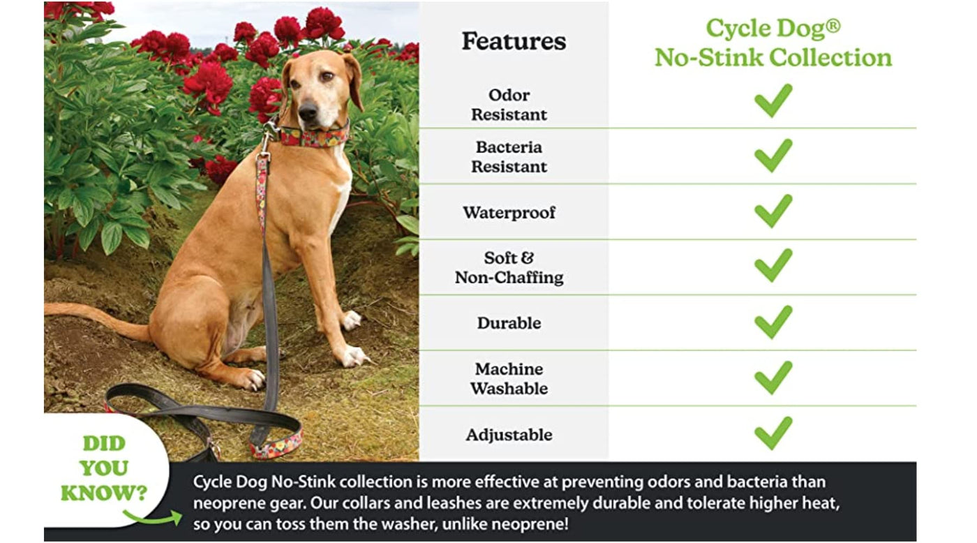 NO STINK WATERPROOF COLLAR: Our no stink waterproof collars are perfect for a romp on the beach a dip in the river or for a run in the rain. Made with upcycled waterproof rubber backing that resists odors unlike typical nylon collars.