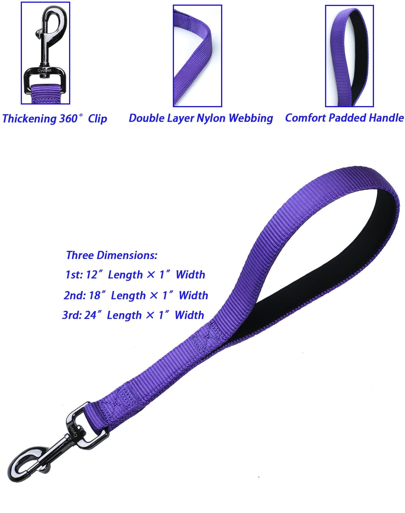 Cyclpet Premium 12''/18''/24'' Inches Nylon Short Dog Leash Are Great To Just Attach To A Collar Or Harness And Let The Dogs Go!Can Do This In Open Space And Local Small Parks When Dogs Allowed When Under Voice Control.