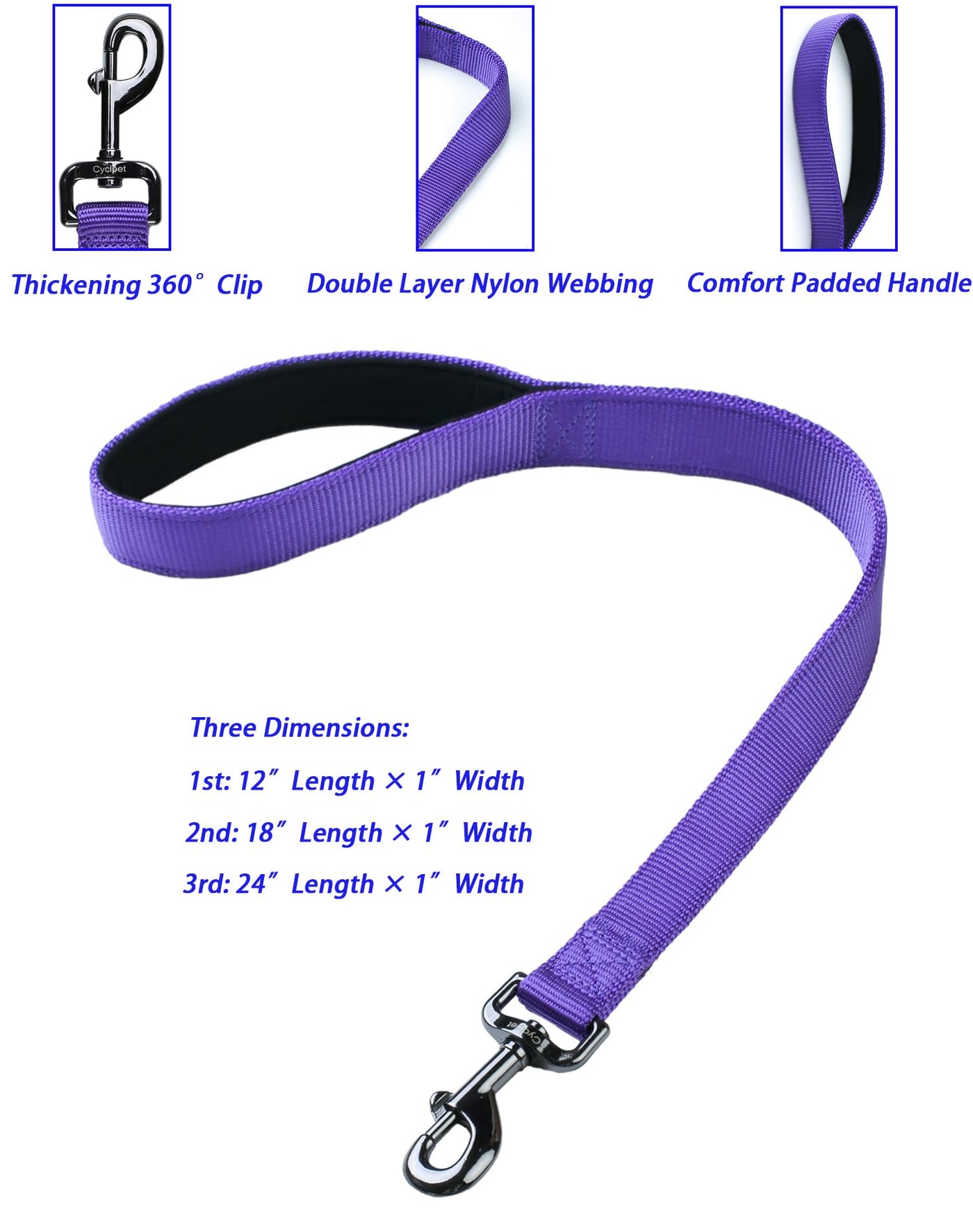 Cyclpet Premium 12''/18''/24'' Inches Nylon Short Dog Leash Are Great To Just Attach To A Collar Or Harness And Let The Dogs Go!Can Do This In Open Space And Local Small Parks When Dogs Allowed When Under Voice Control.