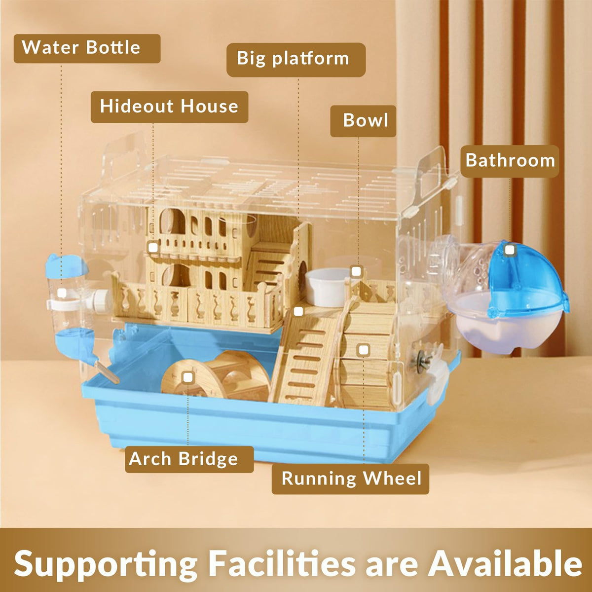 Cycodo 8 In 1 Acrylic Hamster Cage,Wooden Small Animal Cage With Accessories & Toys,2-Layer Small Pet House For Dwarf Hamsters,M