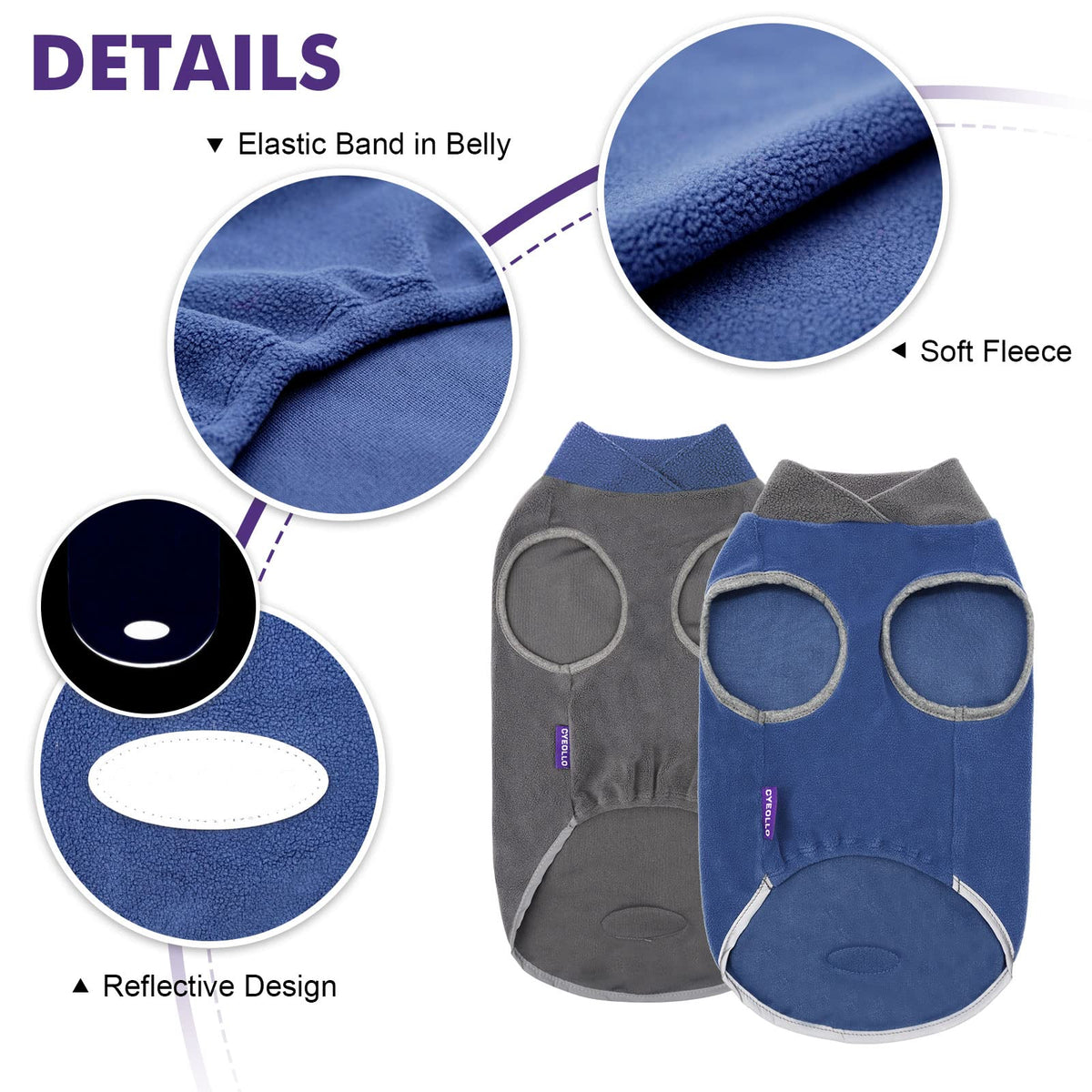 Cyeollo 2 Pack Dog Sweater Stretchy Sweatshirt Soft Fleece With Reflective Stripe Pullover Dog Jacket Pet Puppy Dog Clothes In Cold Weather Sweaters For Small Dogs Grey & Blue