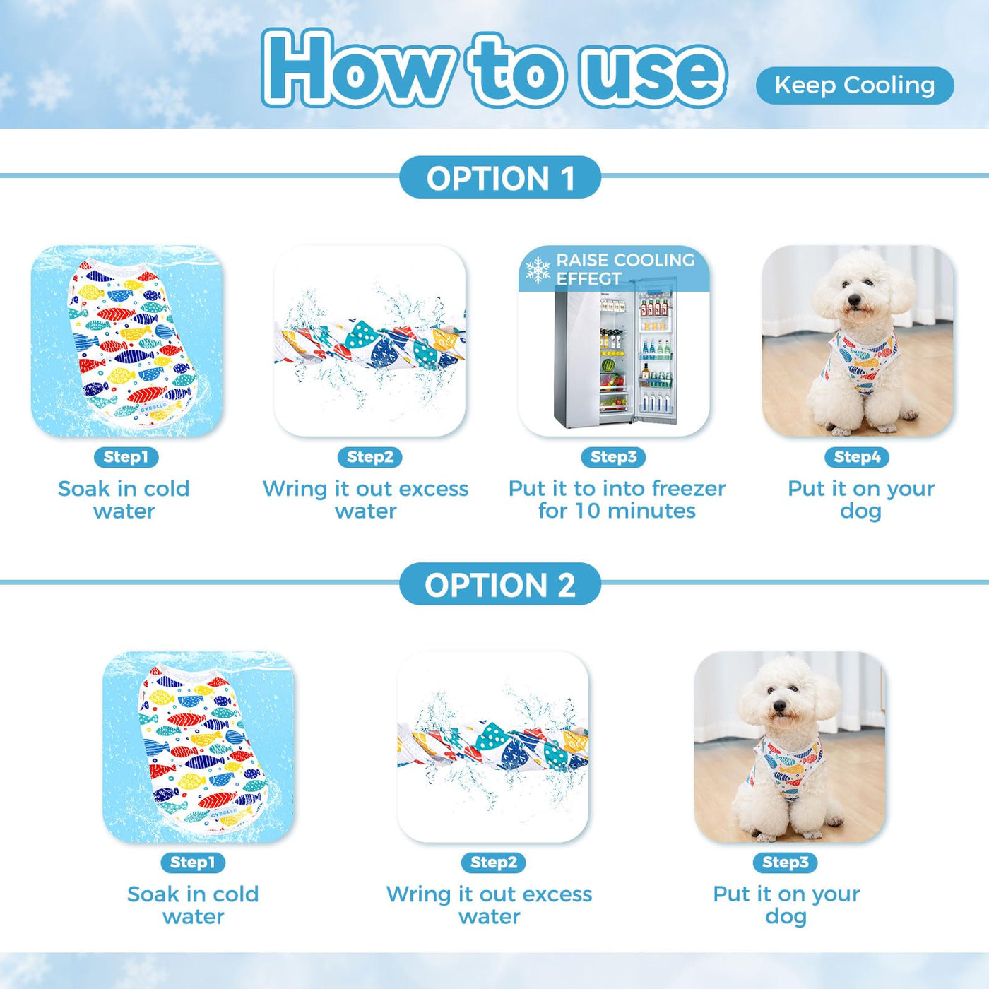 Cyeollo 2Pack Dog Cooling Shirt, Breathable Sleeveless Summer Clothes For Dogs, Intant Cool T Shirts For Small Dogs, Blue Fish L