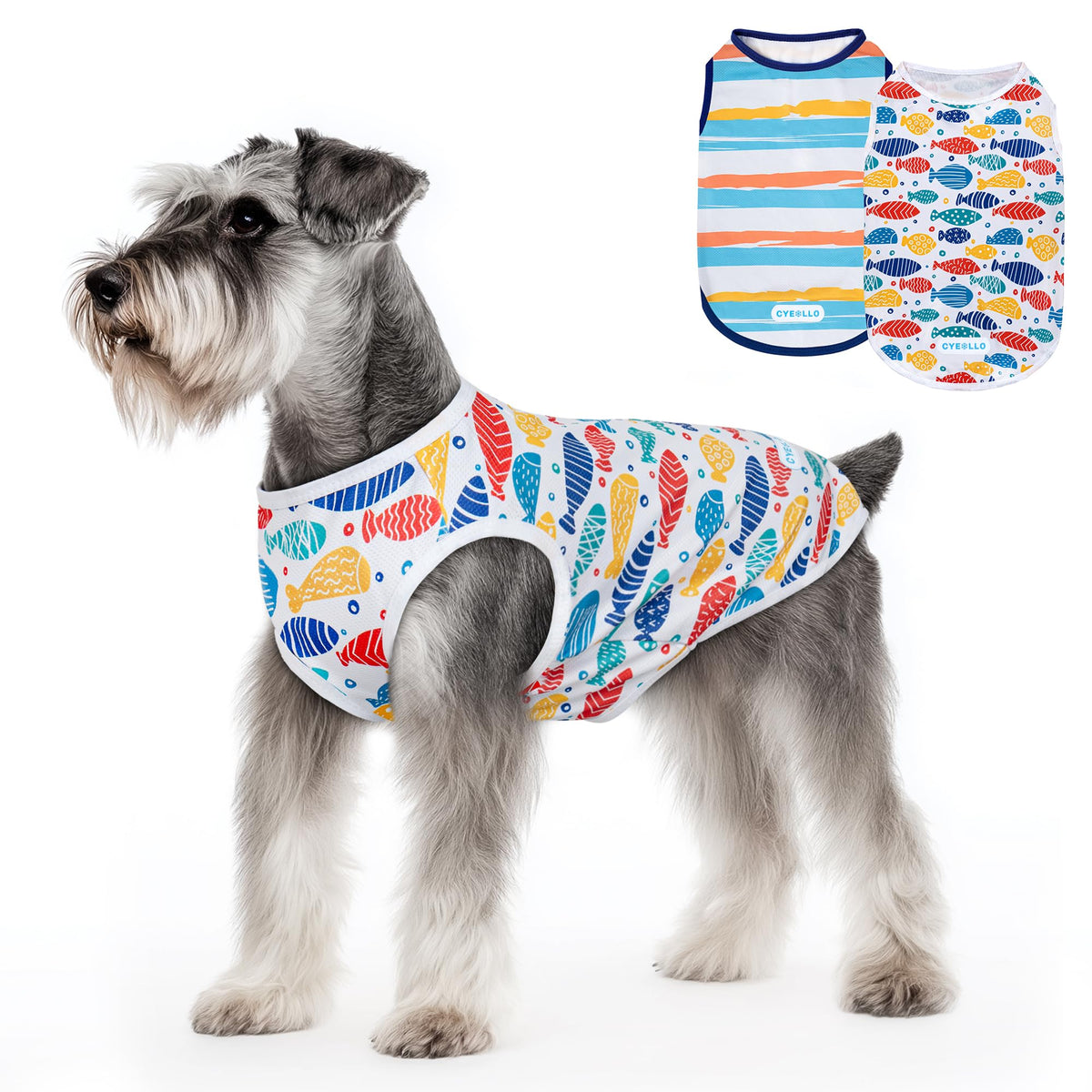 Cyeollo 2Pack Dog Cooling Shirt, Breathable Sleeveless Summer Clothes For Dogs, Intant Cool T Shirts For Small Dogs, Blue Fish M
