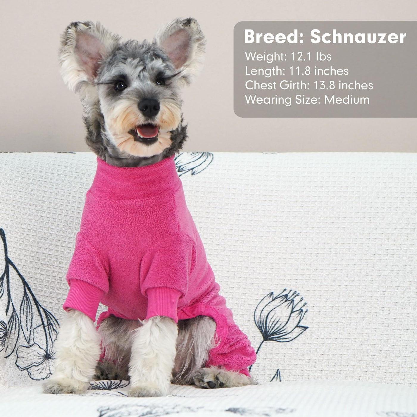 Cyeollo Fleece Dog Pajamas Jumpsuit Thermal Onesie Stretchable Doggie Coat In Fuchsia, Medium To Large Sizes