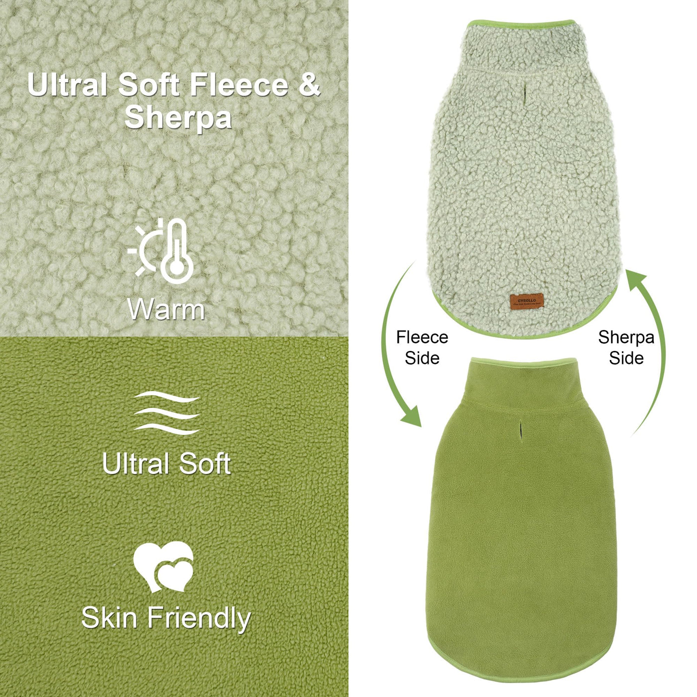 Cyeollo Warm Dog Coat Fleece Sherpa Winter Sweater, Reversible Large Dog Jacket Vest With Leash Hole, Soft Coats For Cold Weathe