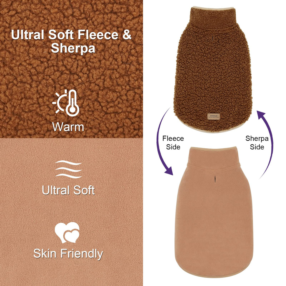Cyeollo Warm Dog Coat Fleece Sherpa Winter Sweater, Turtleneck Jacket Vest For Medium Large Big Dogs, Soft Reversible Coat For C