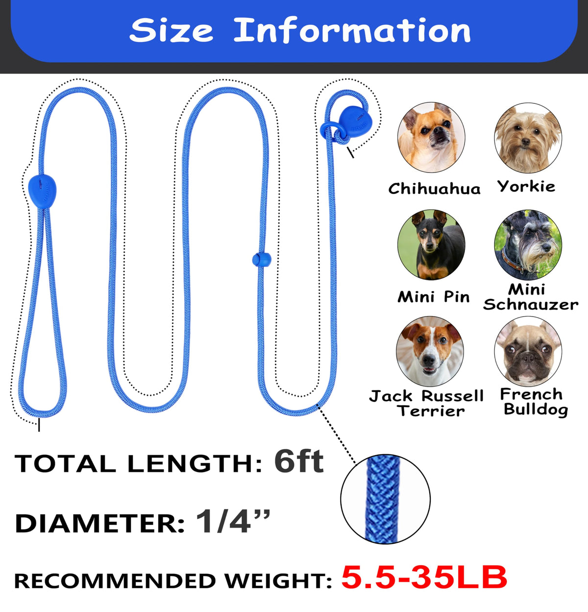 6FT Slip Lead:The total length of this P-shaped leash is 6ft,and the diameter is 1/4 inches.The perfect length slip leash keeps your dog safe under your control while giving the dog plenty of freedom.Suitable for small and medium dogs.such as French Bulldogs, Poodles,Beagles, Dachshunds etc.