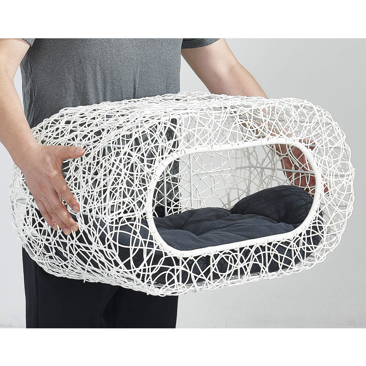 Overview Cat Hideaway House From D+ Garden Is Made From Resin Wicker Rattan Materials That Are Hand Woven And Rigid. The Cat Bed House Looks Like A Big Bed Cave But With Wider Entrance, Excellent Ventilation. The Two-Way Cat House Entry Offers Indoor Cats Kitty Comfortable Yet Private Sleeping Pod Bed, Also A Kennel-Like Playpen To Interact With Cat Owners.&Nbsp; What'S Included Wicker Cat Bed House Soft Bed Cushion Scratch Pad (For Cat) Description There Are Three Different Types Of Cat House Beds: Fully Enclosed Like Cat Cave, Peekaboo Tan Or White. With Peekaboo Cat House, Pet Can See Through Rattan And This Is Typically For Super Vigilant Pets. The Fully Enclosed Cat House Bed Offers Complete Privacy And The ''Peekaboo'' Offers Much Interactive Play Through Cave Holes. Specifications Brand: D+ Garden Collections: Cat Hideaway House Dimensions: 24.5W X 13.3D X 13.8H In. Opening Dimensions: 15.5W X 6.8H In. Materials: Resin Rattan That Are Safe To Pets Style: Pod, Capsule, Cat Cave, Cat Hideaway House Weight: 8.4 Lb. Assembly No Assembly Required