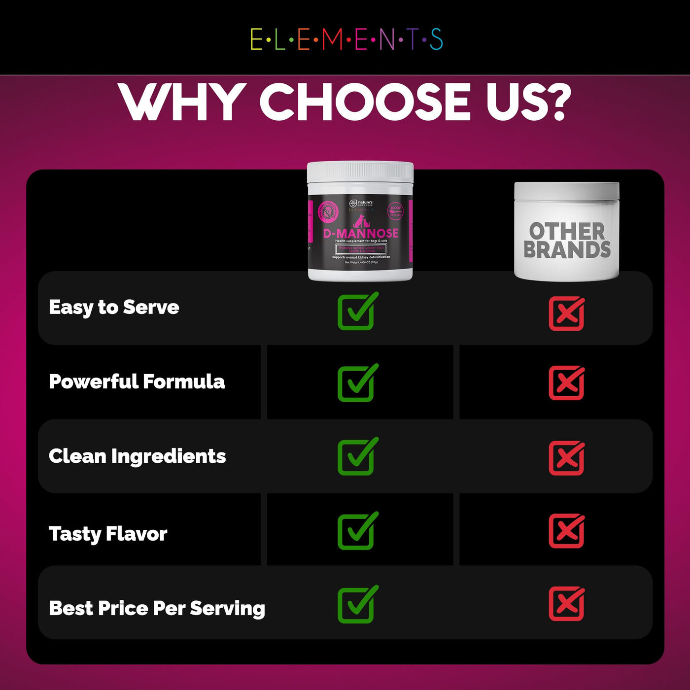 Natures Pure Edge Natural D-mannose powder is an effective alternative to antibiotics for urinary tract and bladder infections. A simple sugar, d-mannose is found naturally in high amounts in many fruits, particularly cranberries. In addition, d-mannose occurs naturally in some cells in the body and is an effective prebiotic because consumption of d-mannose stimulates growth of good bacteria in the digestive tract.? Your dog or cat absorbs the sugar wholly and it is excreted through the kidneys and into the bladder. Bacteria are attracted to an energy source, so when D-mannose is present in the urine, the bacteria leave the lining of your pets bladder, clinging to the D-Mannose, and is eliminated when your pet urinates. 115 grams of powerful ALL NATURAL D-Mannose with all natural real chicken for flavor. Use as treatment for active infections or as a preventative against: recurrent inflammation (cystitis), feline lower urinary tract disorders, Feline Urologic Syndrome (FUS), canine and feline bacterial urinary tract infections, and bladder infections.