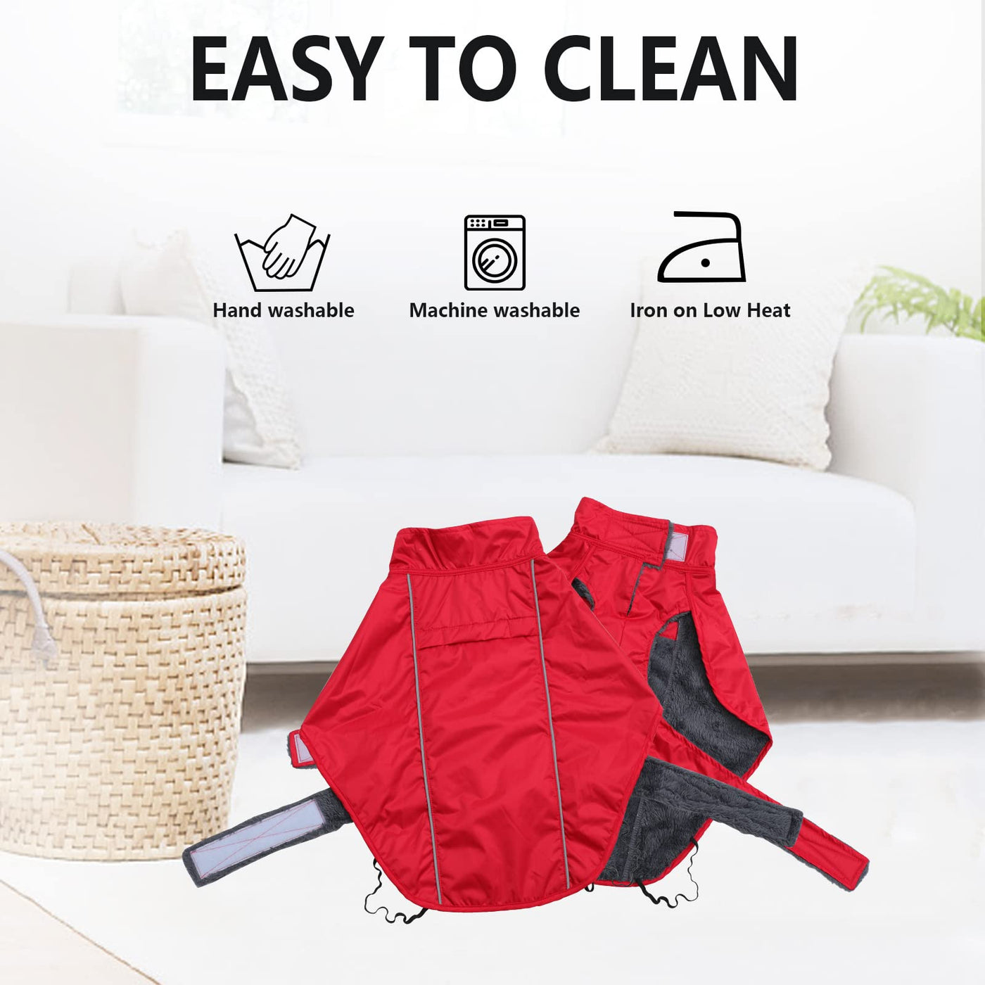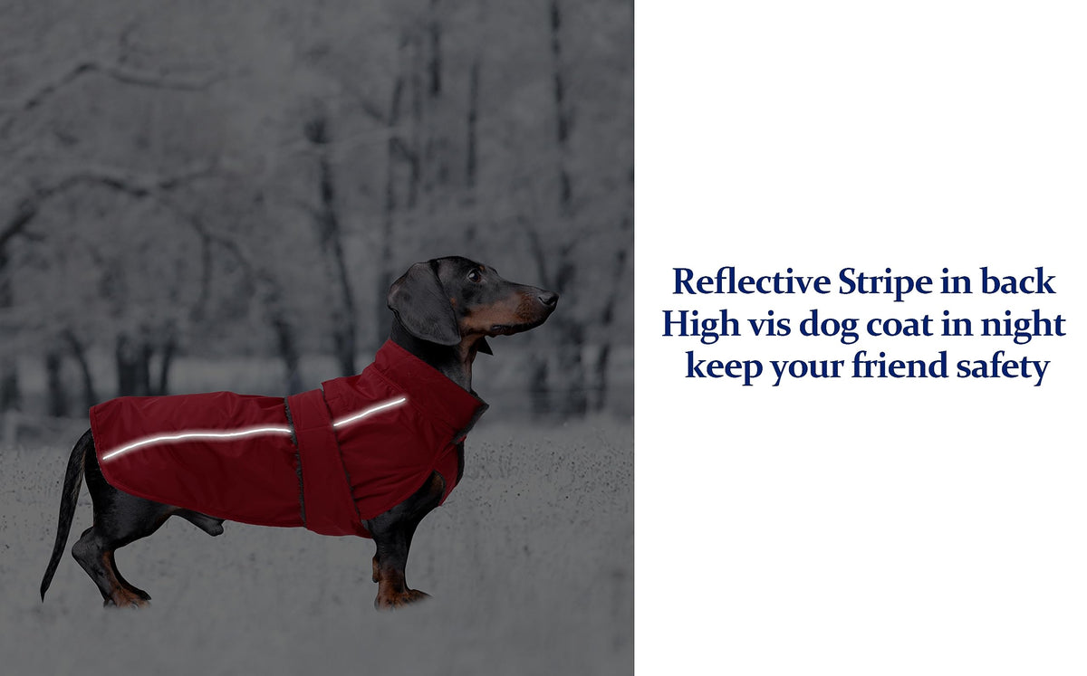 Dachshund Coat Waterproof, Perfect For Dachshund Sausage, Puppy Winter Jacket With Padded Fleece Lining, Outdoor Dog Clothing With Adjustable Bands And Underbelly Protection - Red - M