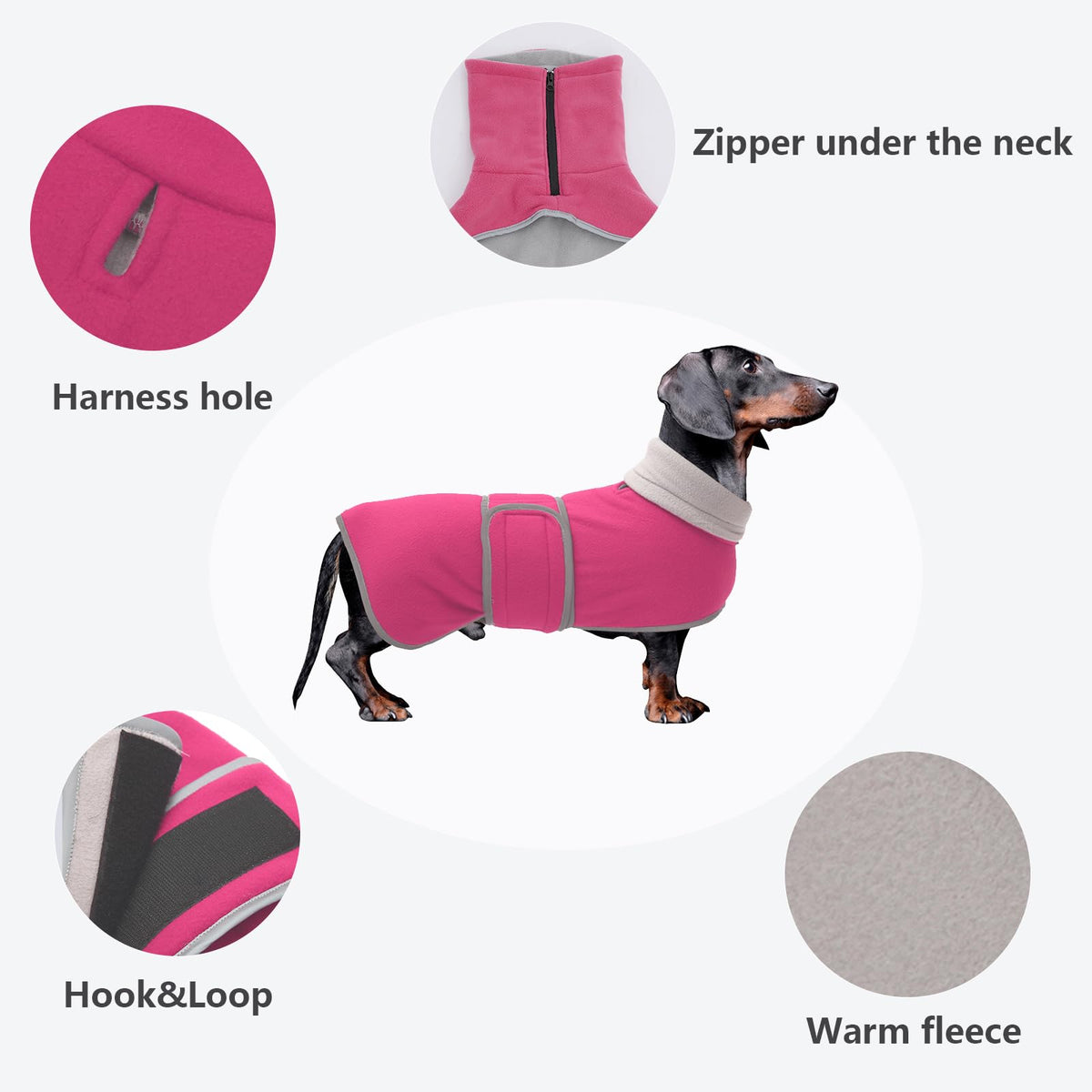 Dachshund Coats Sausage Dog Fleece Coat In Winter Miniature Dachshund Clothes With Hook And Loop Closure And High Vis Reflective Trim Safety - Pink - M