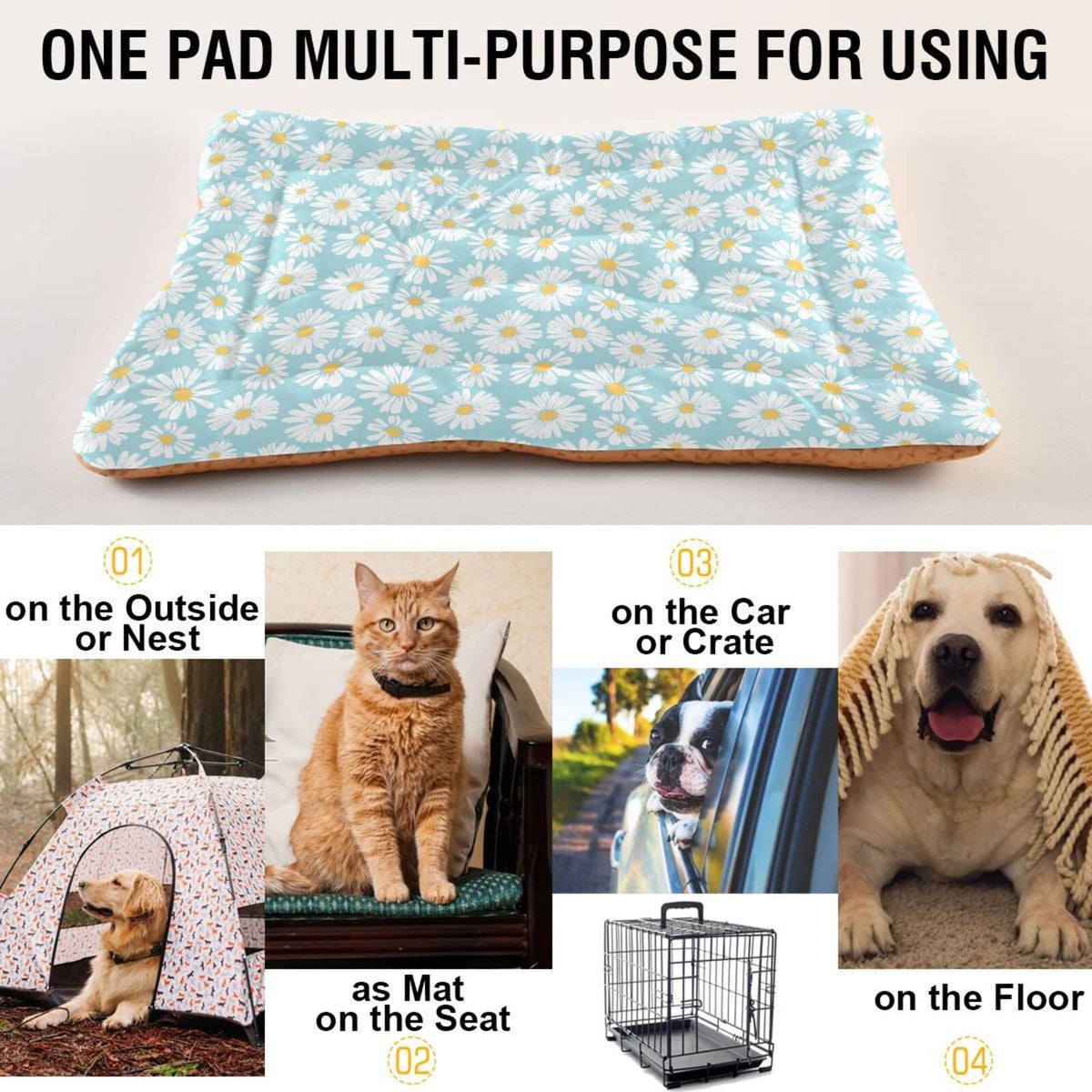 Give Your Pets The Better Protection! Better Life ! Daisy Flower Dog Cat Bed Machine Washable Crate Pet Bed Anti-Slip Soft Pet Sleeping Mat Dog Bed For Crate Suitable For Small Medium Large Dogs 2 Size -Dog Bed Medium, 24X36Inch/60.9X91.4Cm (0-25 Lbs Dogs And Cats) -Dog Bed Small, 18X24Inch/45.7X60.9Cm (30-60 Lbs Dogs And Cats) Details ?Machine Washable ?Non-Slip Dog Beds ?Breathable Protect Your Pet'S Skin ?Short Plush Fabric Sleep Surface Is Soft On Paws And Noses Why Choose Our Dog Crate Mat? +Easy-To-Carry The Pet Bed Is Convenient For You And Your Pets To Hang Out Anywhere. +The Colorful Print And Soft Fleece Surface On This Dog Mattress Offer On-Trend Accents That Can Fit Into Any Home Decor. +Perfect Size - Accommodate Dogs And Cats +Easy To Care +Machine Washable +Suitable For All Seasons Use Note A Dog'S Activeness And Curiosity May Cause It To Bite, Pull, Tear, Or Scratch When It Comes Into Contact With Fresh Things, But You Have To Stop It And Express The Usefulness Of This Product To Him, And They Will Understand.