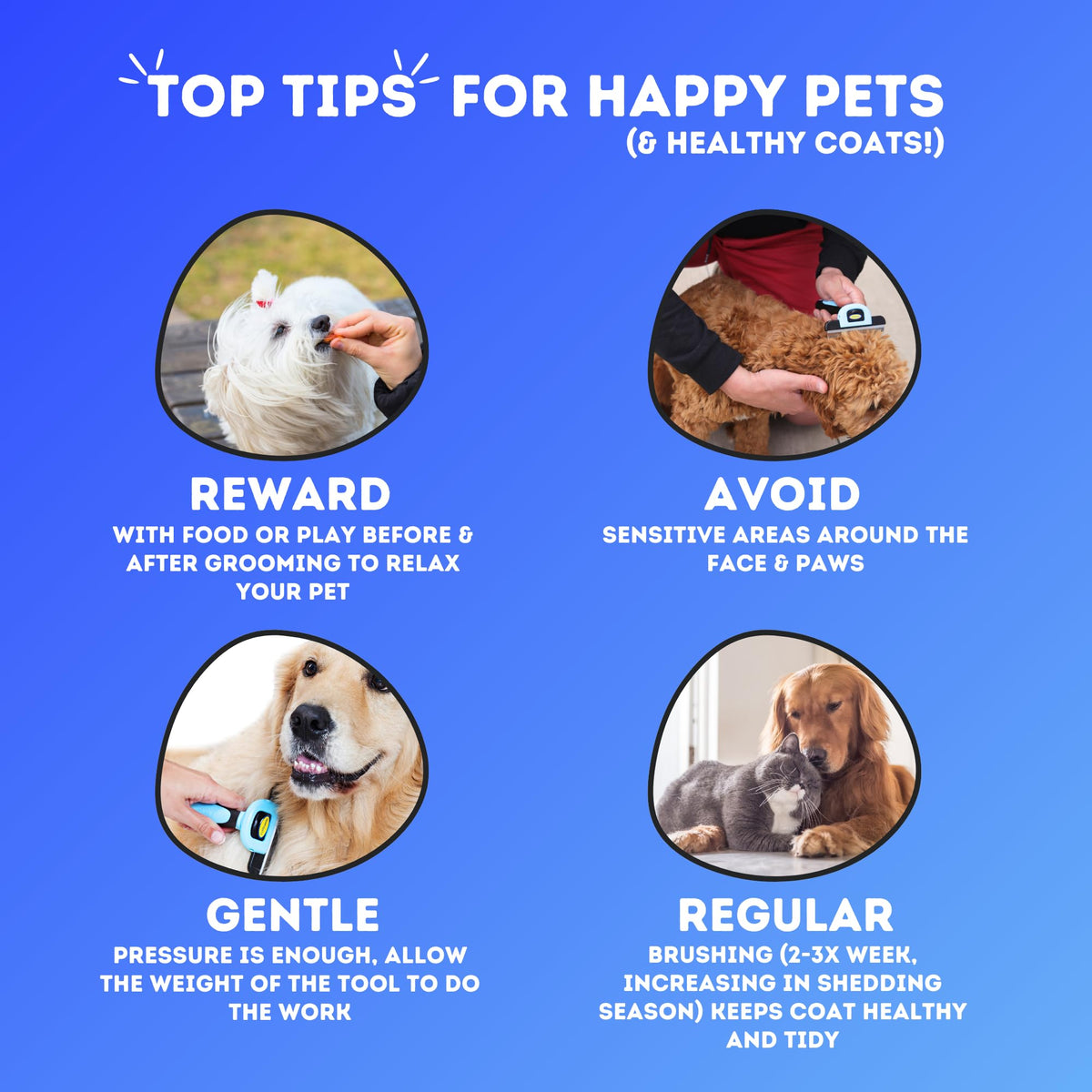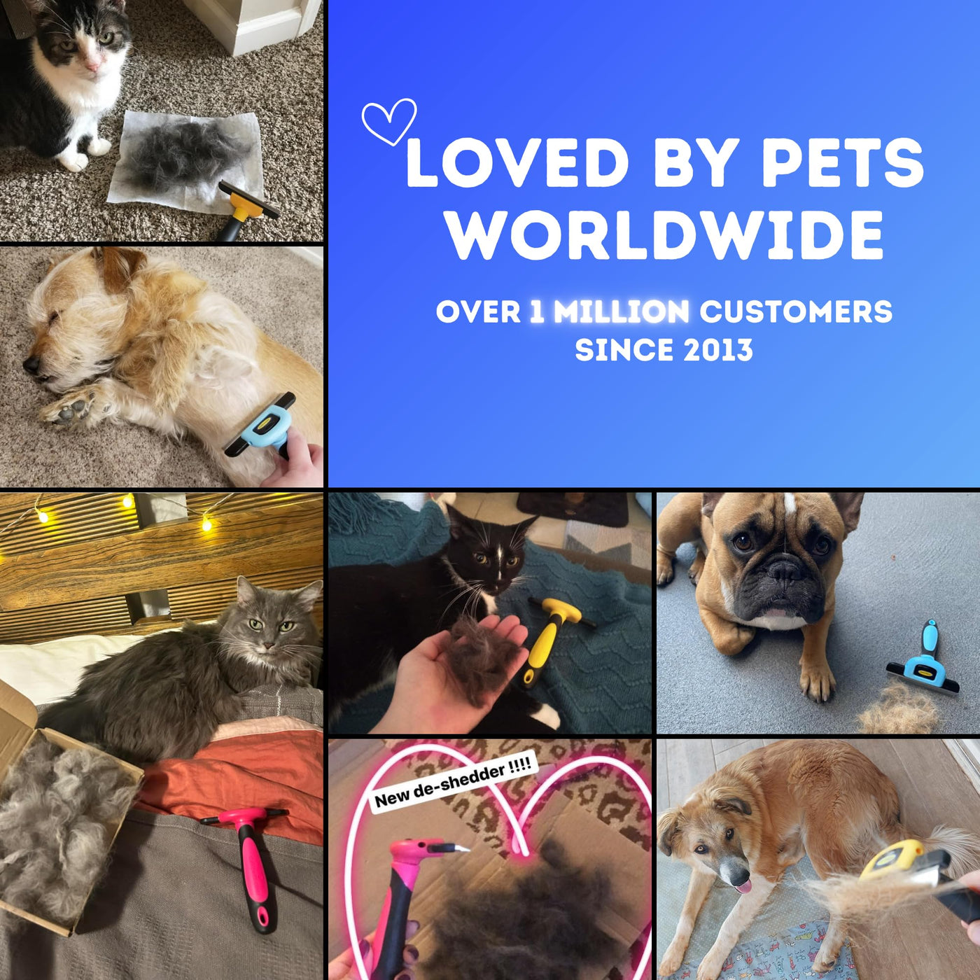 OVER A MILLION UNITS SOLD WORLDWIDE! Trusted by countless happy customers to keep their furry friends looking and feeling their best. DakPets cat and dog deshedding brush gently yet firmly removes trapped hair, reducing shedding by up to 95% in just 10 minutes. Our 4-inch cat and dog hair remover can be used on short and long-haired dogs and cats of any size, making it a convenient solution for all your pets. | MULTIPLE BENEFITS: Our dog and cat brush for shedding removes loose hairs and lightly thins the coat without causing discomfort. This improves the health and appearance of your pet's coat, relieves stress, stimulates blood circulation, and helps you to keep your home fur-free too! | ROBUST: DakPets cat and dog grooming brush features a strong, shatterproof handle and rust-resistant stainless steel blade. It also comes with a handy protective blade cover. This makes our dog hair brush and cat fur remover highly durable, so you can be sure it won't let you down when you need it. | USER-FRIENDLY: This easy-grip deshedding tool for dogs and cats has a versatile detachable design that allows you to remove the comb at just the press of a button. This allows for easy cleaning, and the detached pet fur remover comb can even be used on its own for hard-to-reach areas. | RECOMMENDED BY VETS: All DakPets’ deshedding brush for cats and dogs are approved by professional veterinarians and rigorously tested to ensure they meet the highest animal safety standards - meaning you can be sure of giving your pet the very best care with our cat and dog brushes for shedding.