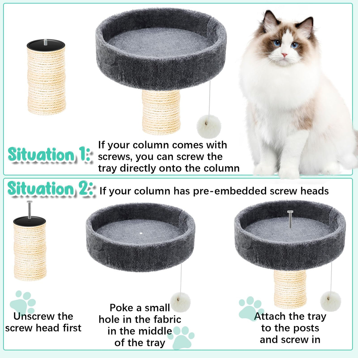 Dansydaisy 2 Pieces 13.5'' Cat Tree Replacement Parts Accessories Round Kitten Tree Tower Top Perch Bed Platform Cushion M10 Cat