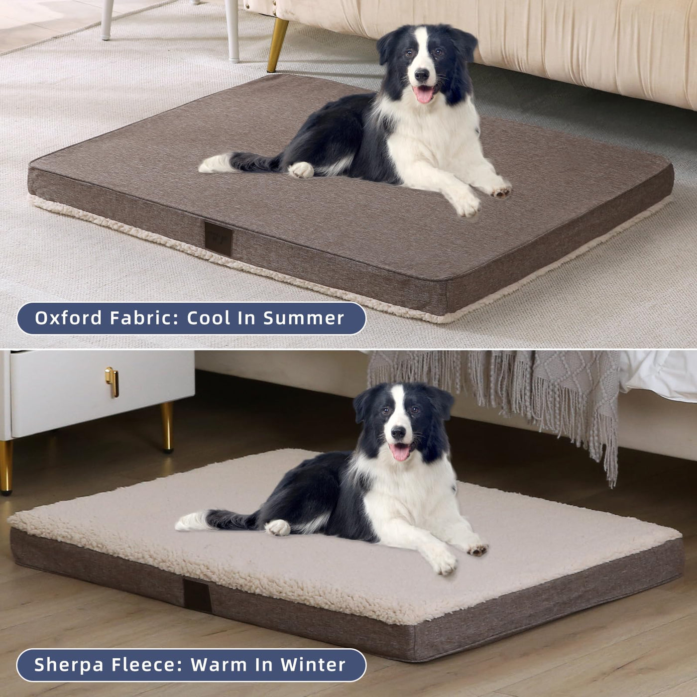 Daysu Large Dog Crate Bed - Big Orthopedic Waterproof Dog Beds With Removable Washable Cover Brown For Large Dogs, Egg Crate Foam Pet Bed Mat, Suitable For Dogs Up To 75 Lbs