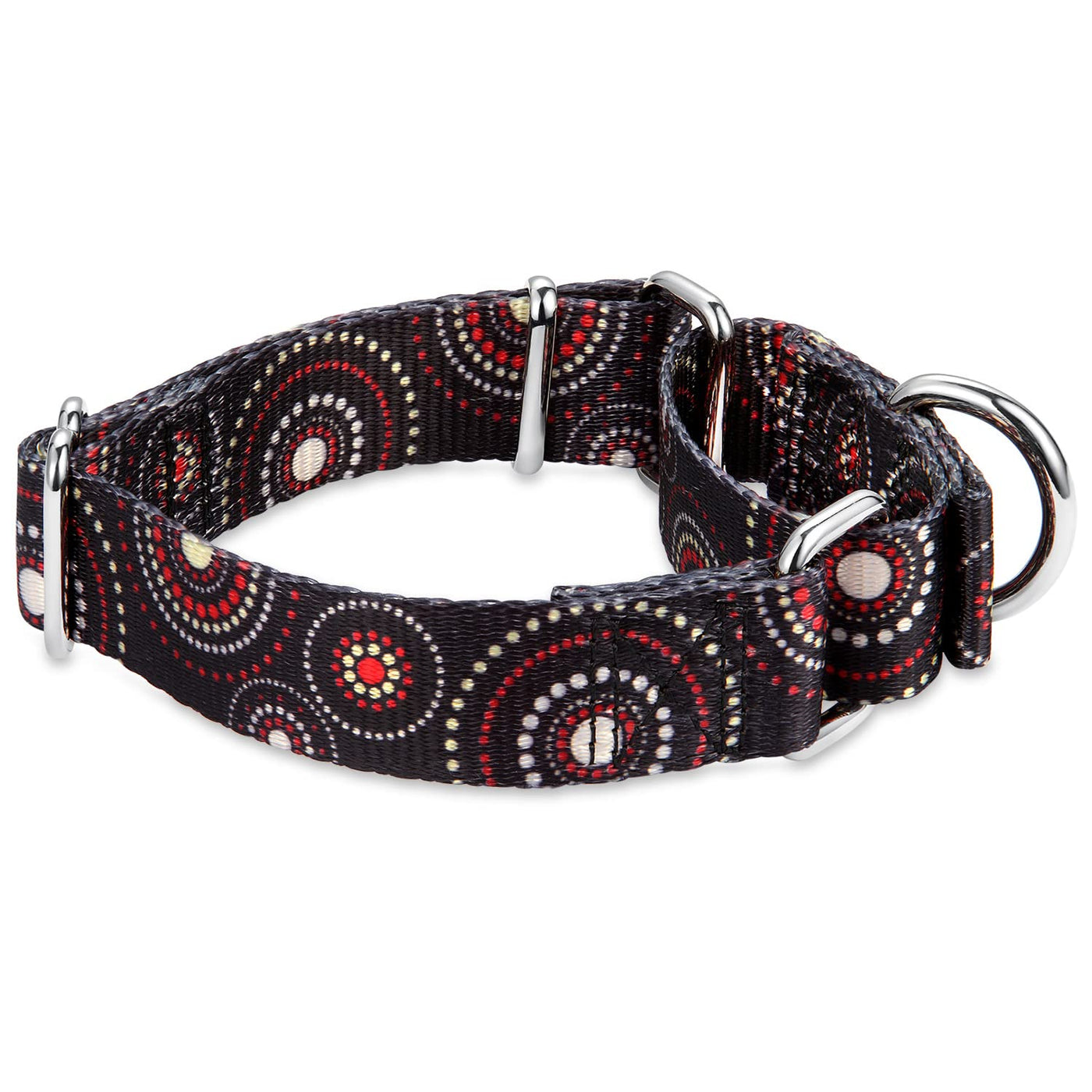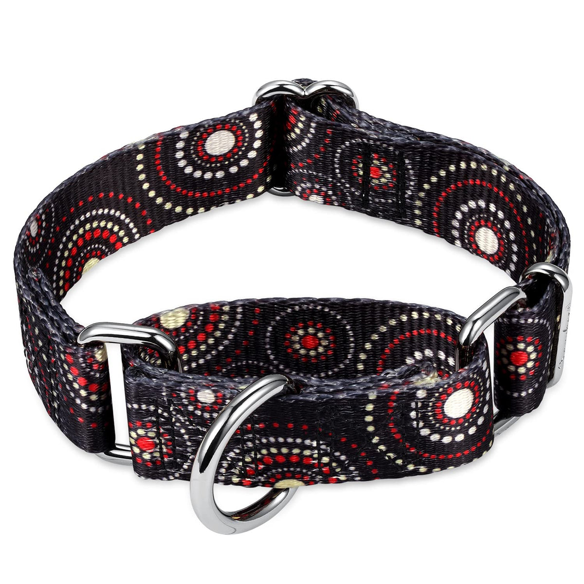 Dazzber Martingale collar Dog collar No Pull Pet collar Heavy Duty Dog Martingale collars Silky Soft with Unique Pattern for Medium and Large Dogs (Medium 1 Inch Wide Firework Dots -Black)