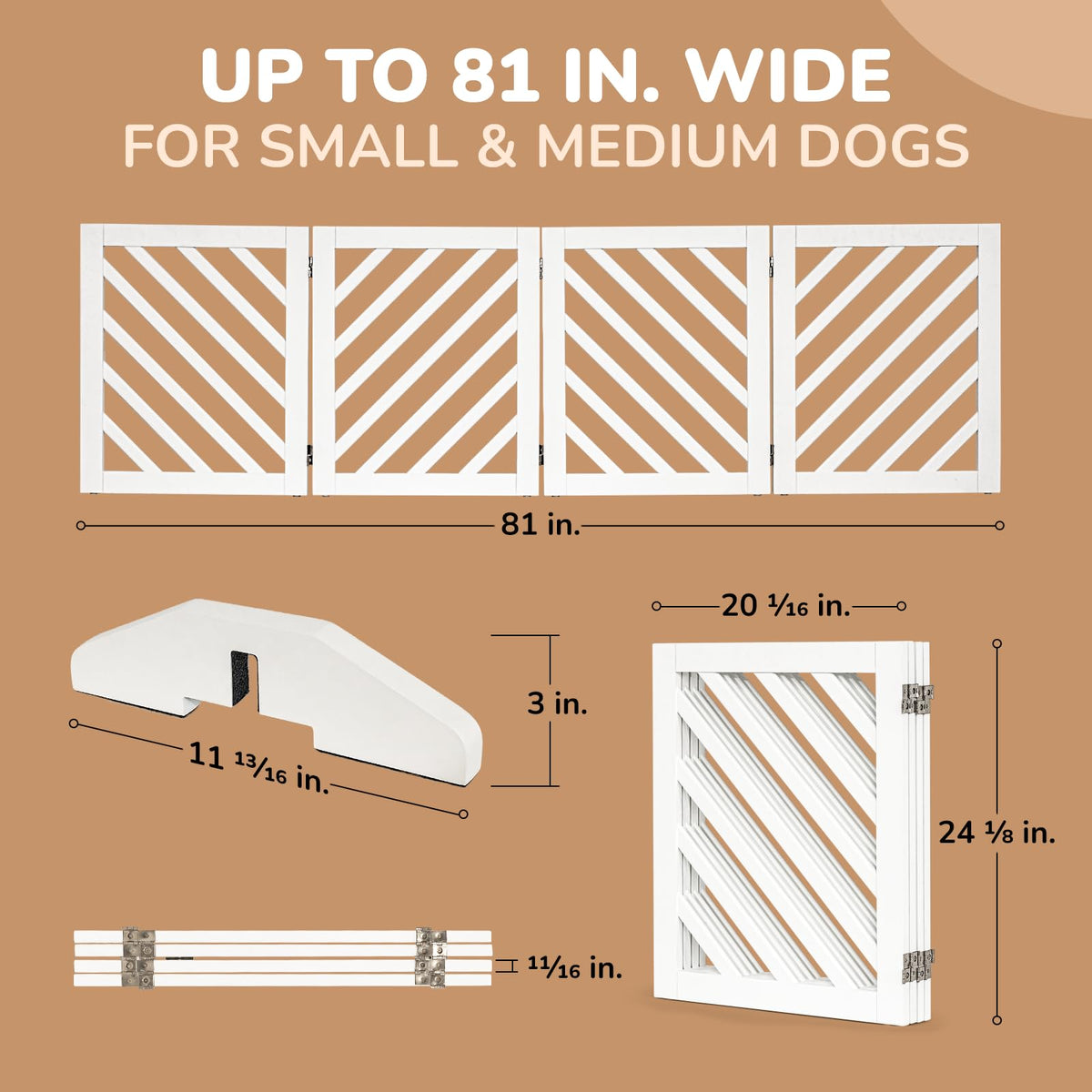 Our Freestanding Dog Gates Is A Useful Tool For Training And Teaching Your Pet Boundaries. With Dcee Wooden Pet Gate, You Can Effortlessly Prevent Your Pet From Accessing Areas That Are Off-Limits, Creating A Secure And Worry-Free Environment For Both Pets And Owners.About Product:- Upgraded Design For Pet Safety: Crafted From 100% Premium Acacia Wood, Our Wooden Pet Gate Provides Durability And Sturdiness. Our Freestanding Dog Gates Comes With Two Support Legs To Provide Extra Stability, Preventing Any Accidental Tipping Or Falling During Use.- Convenient Hinges: Made From Rust-Resistant Steel Hinges For Long-Lasting Use, 360-Degree Hinges Make Folding And Unfolding Effortlessly.- Easy Setup And Versatile Application: No Assembly Is Required, Use It As A Pet Divider In Hallways, Doorways, And More. Our Foldable Indoor Dog Gates Indoor Features A Lightweight Design, Making It Easily Portable.- Elegance Color: Our Wood Dog Gate Comes In White And Ebony, And Blends Seamlessly With Your Home Decor While Providing A Safe Space For Your Pet.- Floor Protection: Each Panel Of Foldable Wooden Pet Gate Comes With Rubber Pads, Protecting Your Floors From Scratches And Enhancing Stability.Elevate Your Pet'S World With Our Stylish And Secure Indoor Dog Gate Today!