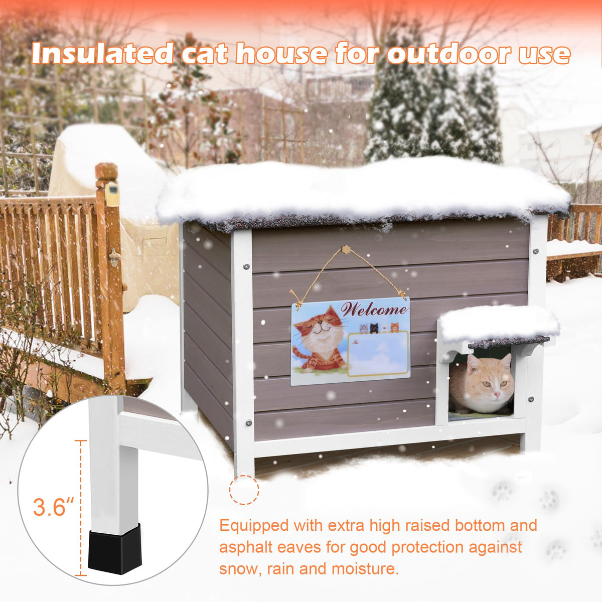 Deblue Insulated Outdoor Cat House Features: Sloped Roof To Avoid Rainwater Accumulation Eaves Design To Prevent Rainwater From Drifting In High Leg Design Prevents Water From Entering The Cat House The Door Curtain Blocks Most Of The Cold Wind Removable Divider Panel To Separate Private Spaces For Pets 6-Sides All Round Foam Insulation For Warmth Diy Acrylic Board Sign Your Cat'S Name To Decorate Your Cat'S House The Cat House Has Good Insulation Effect And The Cat Is Safe In The Outdoor Winter Material: Fir Wood + Foam Sandwich Asphalt Dimension: Overall Dimension: 24Lx20Wx21H Inner Dimension: 22.3L X 18.1W X 15.6H Door Dimension:5.12 W X 6.9 H 100% Quality After-Sales: If You Have Any Problem Please Contact Us Through Amazon Service, We Will Try Our Best To Solve The Problem For You Until You Are Satisfied.