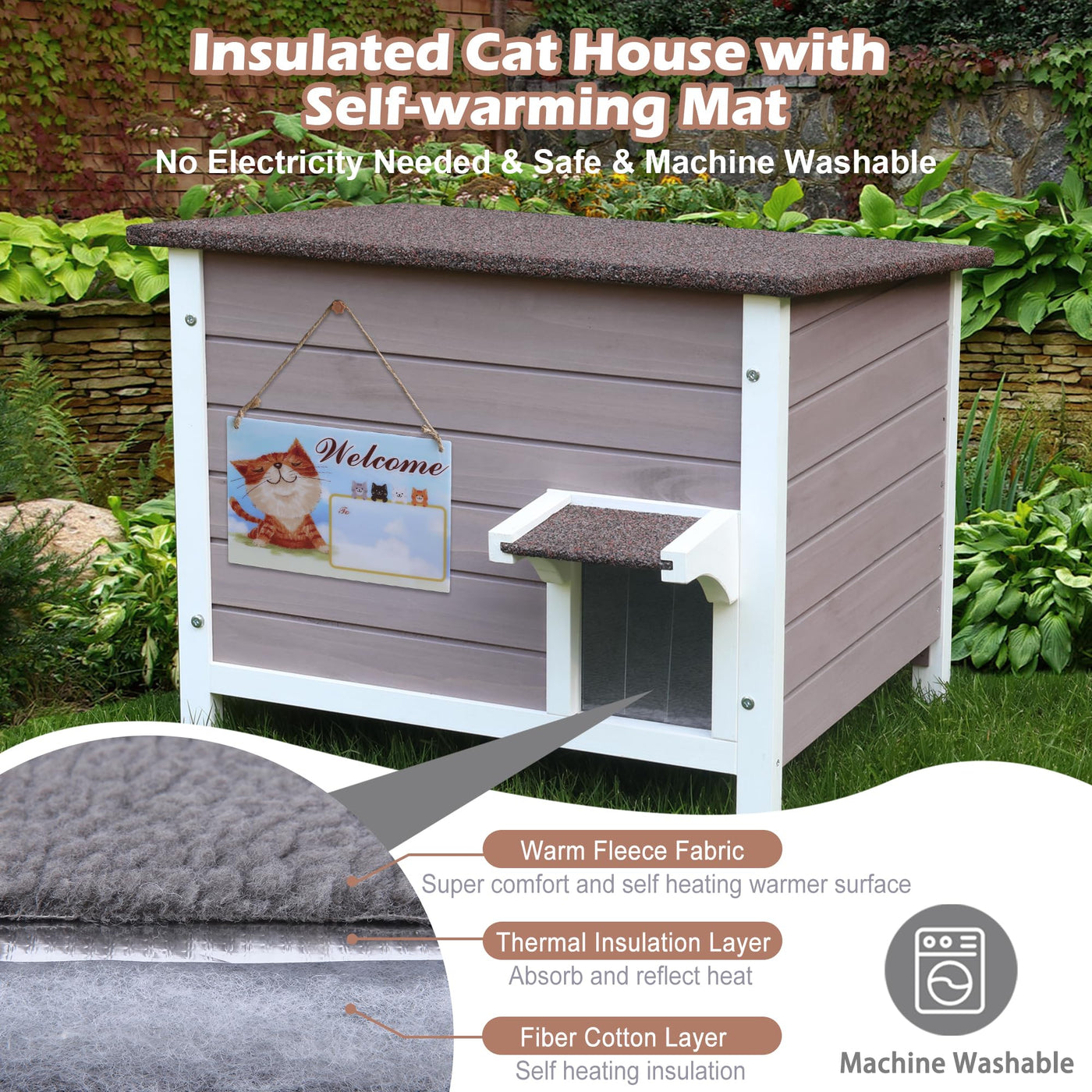 Deblue Ourdoor Cat House, 100% Insulated Cat Houses For Outdoor Cats, Weatherproof Feral Cat House With All-Round Foam, Wooden C