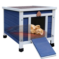 Deblue Outdoor Cat House With Self-Warming Mat, Weatherproof Cat House For Feral Cat, Cat Houses For Outdoor Cats (Blue House Wi