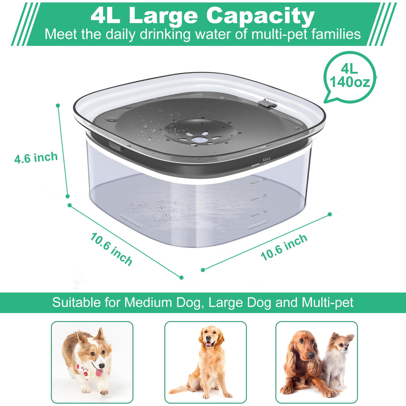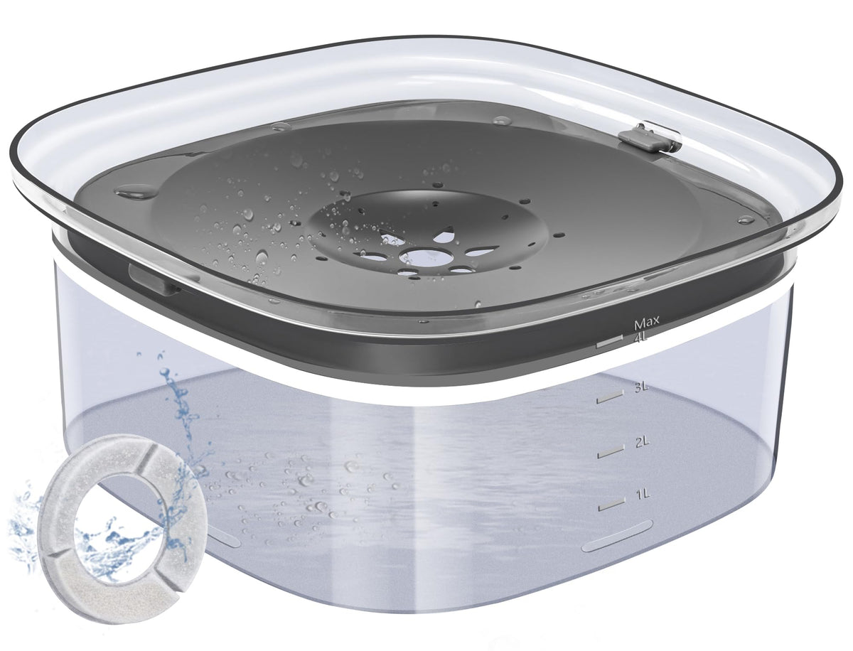 Decflow 4L Dog Water Bowl, Super Large Capacity Dog Bowl With Carbon Filter, Anti-Choking No Spill Water Bowl With Slow Water Fe