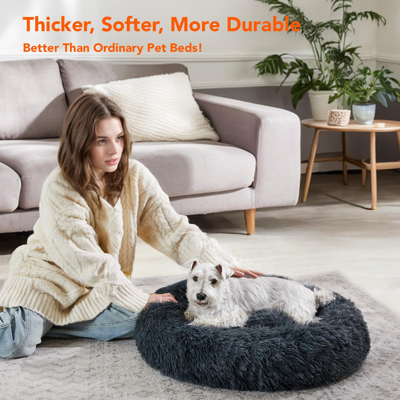 Deconovo Calming Dog Bed For Small Dogs/Cats - Plush Donut Pet Bed With Anti-Slip Bottom, Washable Anti-Anxiety Warming Cozy Sof
