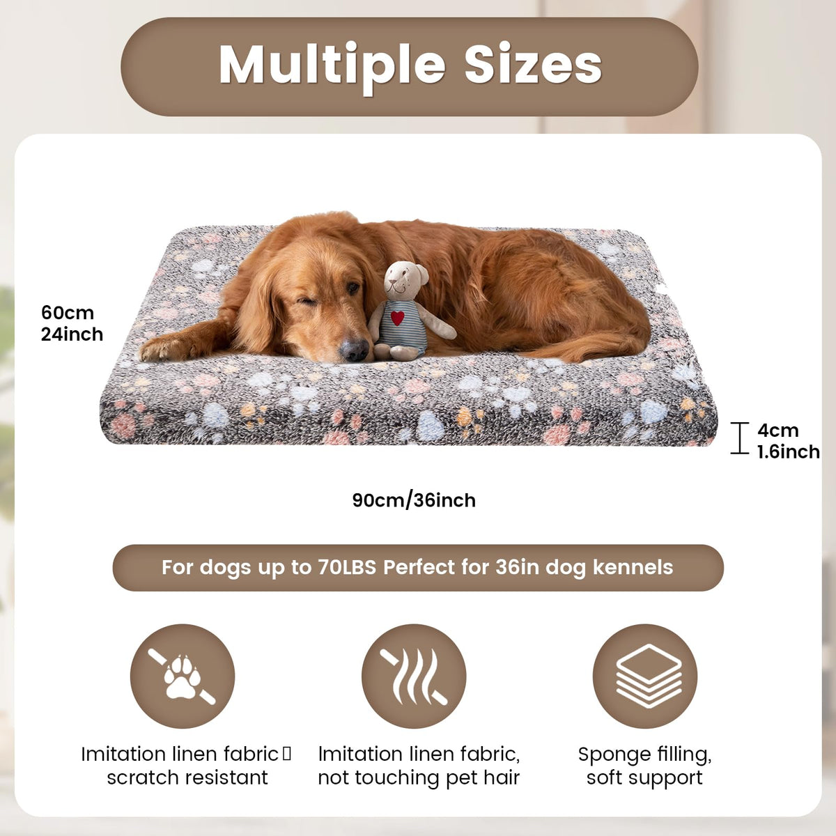 Provide Your Pet With Year-Round Comfort With Our Reversible Pet Mat. This Versatile Mat Features A Dual-Sided Design To Suit Different Seasons. The Front Side Is Made Of High-Quality Short Plush Fabric, Offering Warmth And Softness That Is Perfect For Winter. The Back Side Is Made Of Breathable Faux Linen, Providing A Cool And Refreshing Surface Ideal For Summer. This Ensures That Your Pet Enjoys The Ultimate Comfort No Matter The Season. Our Pet Mat Comes In Four Sizes: 16''X24'' (40X60 Cm), 20''X30''(50X75 Cm), 24''X36''(60X90 Cm) And 28''X42''(70X105 Cm), The 16''X24'' Size Fits 24-Inch Dog Kennels And Is Suitable For Pets Under 20 Pounds. The 20''X30'' Size Fits 30-Inch Dog Kennels And Is Ideal For Pets Under 45 Pounds. The 24''X36'' Size Fits 36-Inch Dog Kennels And Is Ideal For Pets Under 70 Pounds. The 28''X42'' Size Fits 42-Inch Dog Kennels And Is Ideal For Pets Under 90 Pounds. No Matter The Size Of Your Pet, We Have The Perfect Mat To Keep Them Comfortable And Cozy. This Pet Mat Is Not Only Perfect For Use In Dog Kennels, But Also Versatile Enough For Use On Sofas, In Cars, Or Even On The Lawn While Camping. The Reversible Design Makes Cleaning And Maintenance A Breeze, Ensuring Your Pet Always Has A Clean And Hygienic Resting Place. While The Mat Is Not Waterproof, It Is Easy To Clean And Maintain, Making It A Practical Choice For Various Settings. Choose Our Reversible Pet Mat To Ensure Your Pet Enjoys Unmatched Comfort And Care, Wherever They May Be.