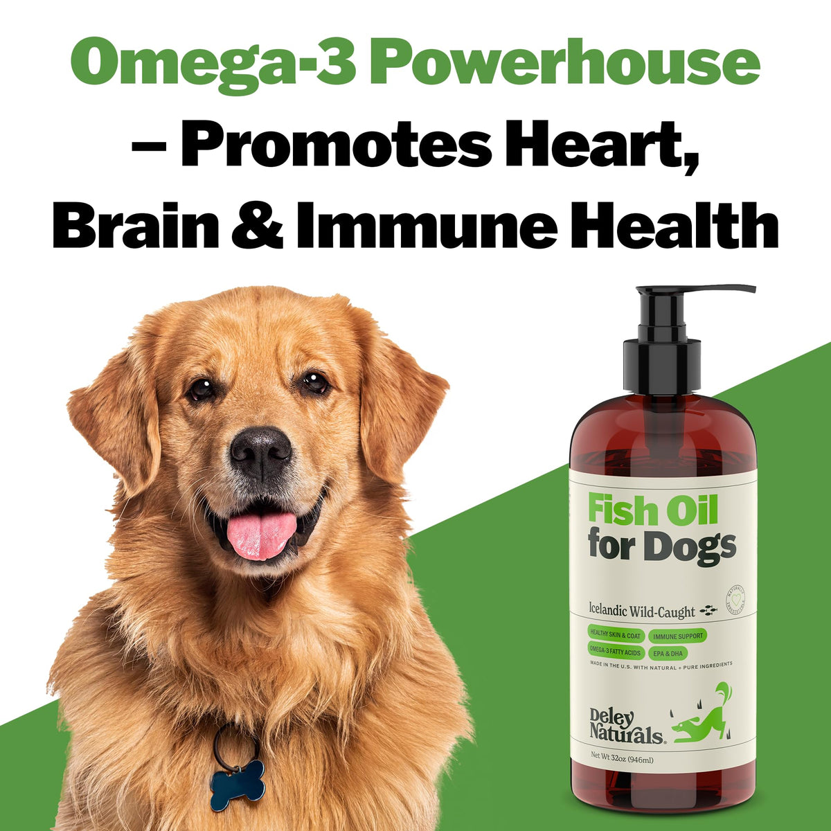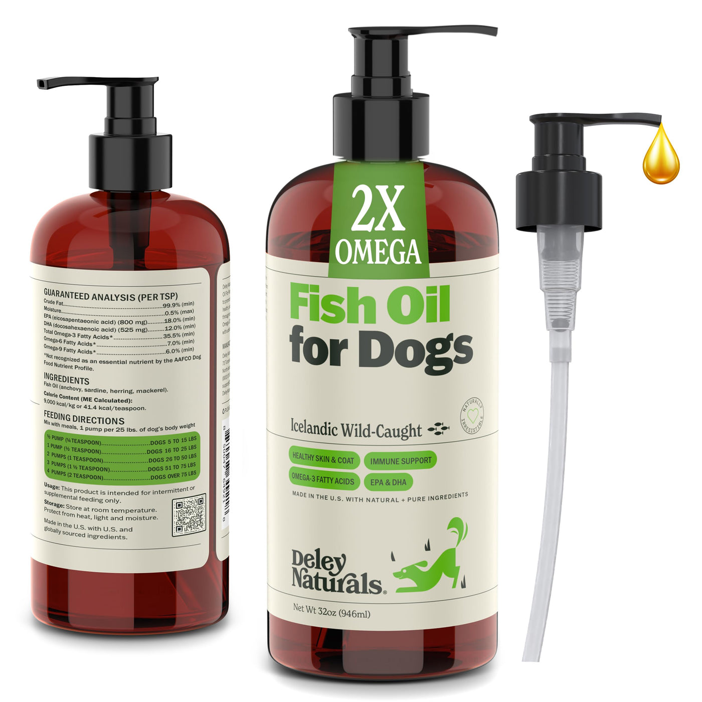 Deley Naturals Dog Fish Oil is a premium Omega 3-6-9 supplement designed for comprehensive skin and coat care. This high-quality fish oil, sourced from wild-caught North Atlantic fish, provides effective itchy skin treatment for dogs and addresses dry skin relief for dogs. Enriched with EPA and DHA, it supports overall coat defense for dogs, reduces shedding, and enhances coat luster. Our pure liquid dog skin and coat supplement ensures superior relief for skin allergies and dryness. The convenient pump top simplifies daily administration, making it an excellent choice for maintaining your dogs skin and coat health. Manufactured in an FDA-registered facility, it meets rigorous quality standards, offering a reliable solution for dog skin allergy relief and comprehensive care.