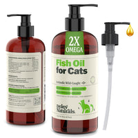 Our GMO Free omega 3 fish oil for cats supports immune health, cardiovascular function, and improves joint stiffness and allergies. This high-potency fish oil helps with dry skin relief for cats, alleviates cat itchy skin, and reduces excessive shedding. It also supports cat acne relief and promotes a healthy, shiny coat. Crafted from Wild Caught Omega-3 fish with omega 6 and 9 fatty acids, our fish oil delivers high levels of EPA and DHA, sourced from small, non-predatory fish like sardine, herring, mackerel, and anchovy, ensuring purity with no mercury. Easy to use, our fish oil comes with a pump top for mess-free application over food or treats, making it convenient to support your cats overall health and address specific issues like cat acne, dry skin relief, and anti-shedding. Deley Naturals Cat Fish Oil is processed in an FDA-registered facility in the USA and adheres to the highest standards for quality and safety.