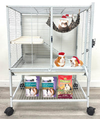 This Cage Offers Plenty Of Space For Even The Most Energetic Ferrets To Run, Jump And Play. Cage Comes Complete With Ramps, Shelves, And Even A Hammock To Keep Your Fuzzy Friend Entertained And Content. Featuring Two Large Doors, You Are Able To Easily Access Your Pet While Ferrets Can'T Open These Escape-Proof' Doors. Platforms Grille And Bottom Tray Are All Easily Removed For Convenient Cleaning. Castered Stand Provides Portability From Room To Room While The Space Saver Shelf Holds Toys Treats And Supplies.