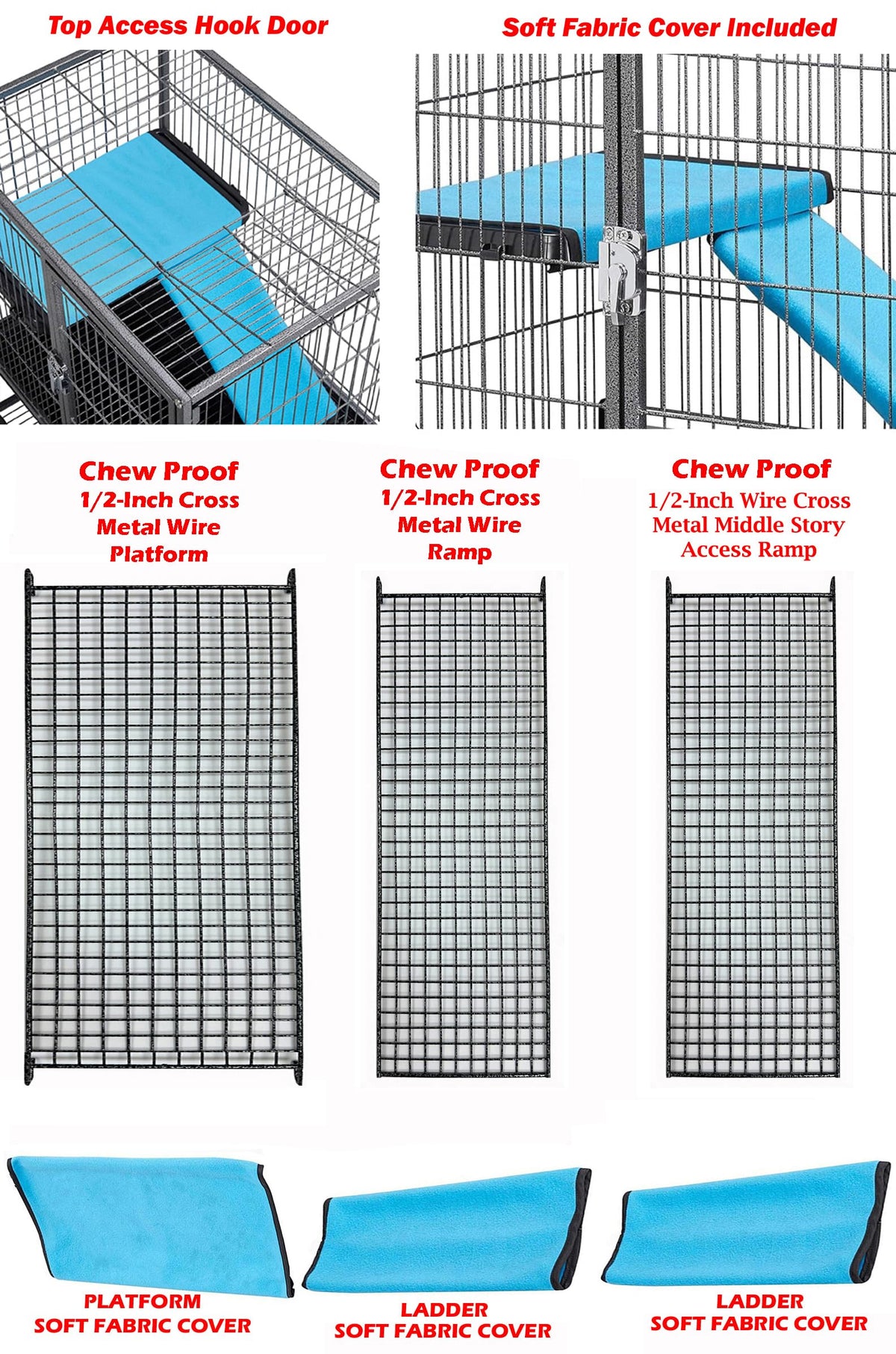 Deluxe Double Unit Two Full Story Durable Front Doors Tight 1/2-Inch Wire Spacing Chew-Free Small Animal Critter Home Cage Water
