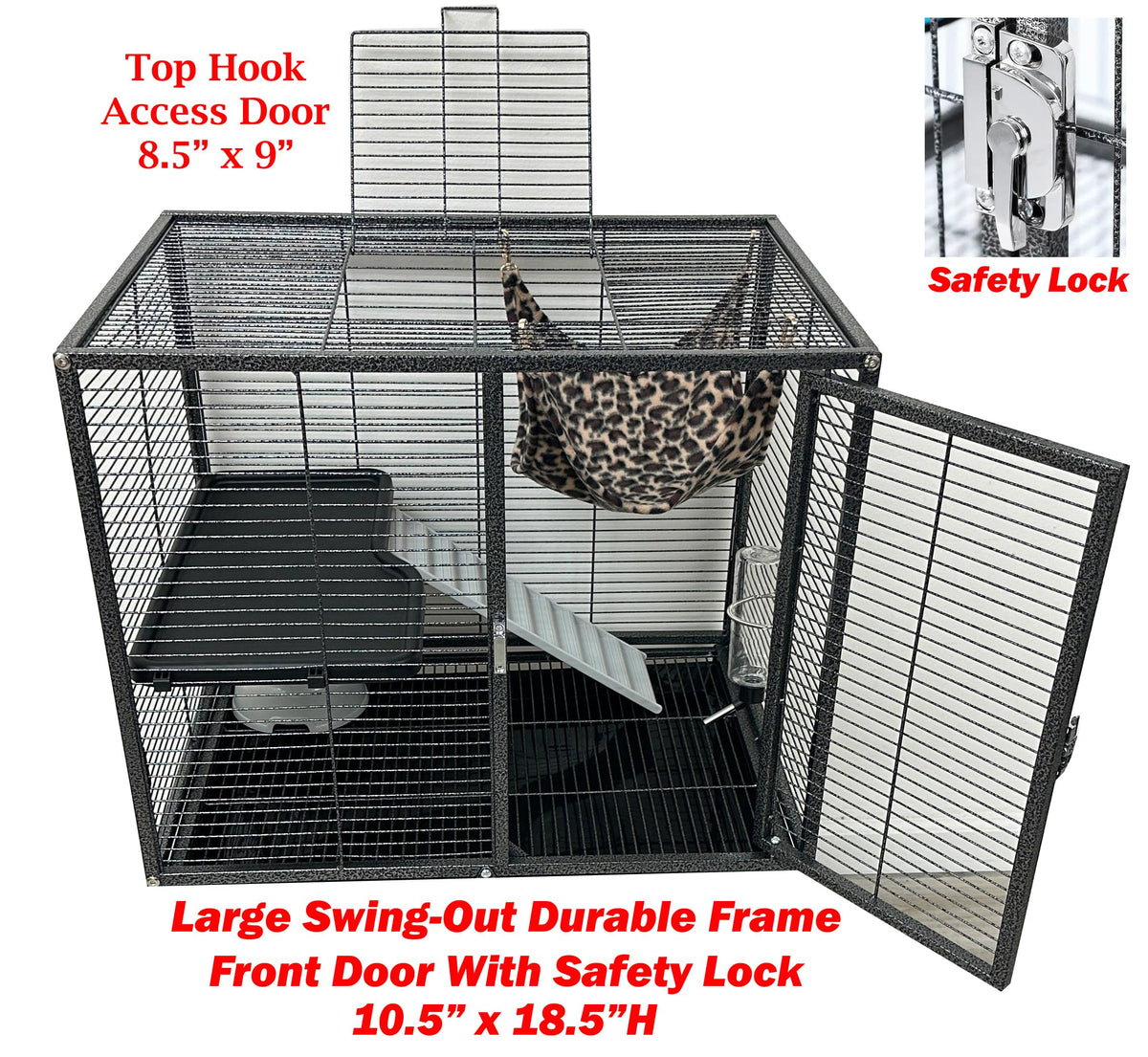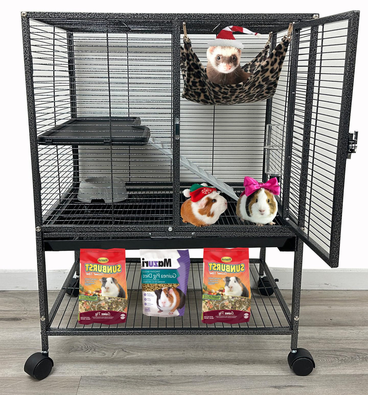 Deluxe Two Tiers Chew-Proof Durable Swing-Out Front Doors Tight 1/2-Inch Wire Spacing Small Animal Critter Home Cage For Feisty