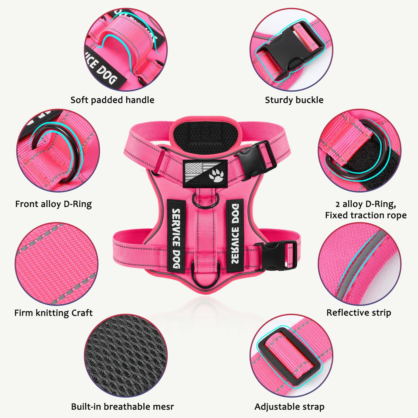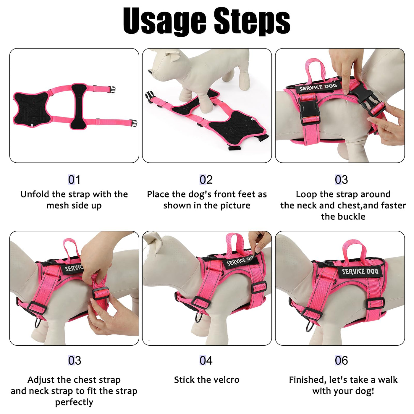 Package: 1*Dog Harness , 5* Patches. Two Adjustable Straps: Our Dog Harness Has 2 Adjustable Straps, Can Be Adjusted According To The Size Of The Dog To Perfectly Fit The Dog'S Body And Provide Better Comfort. Equipped With Three Metal Traction Rings, Which Can Prevent Suffocation Or Neck Strain, Which Is Very Suitable For Dogs Training Or Dogs That Tend To Pull. Breathable And Wear-Resistant: Made Of Reinforced Oxford Nylon Material, Built-In Mesh, Which Is Comfortable And Breathable, Can Be Worn All Seasons In All Seasons, Can Perfectly Protect The Dogs Skin. Easy To Put On : Can Be Worn Sideways, No Need To Go Through The Dog'S Head, Get Rid Of The Trouble Of Traditional Wearing Methods, And Can Be Put On And Taken Off Easily And Convenient Size Map: Xs- Suitable For Dog'S Neck Girth: 9.84-14.96 In, Chest Girth :13.78-20.87 In S- Suitable For Dog'S Neck Girth: 10.24-17.32 In, Chest Girth: 15.35-24.41 In M- Suitable For Dog'S Neck Girth: 12.20-20.08 In, Chest Girth: 18.90-30.31 In L- Suitable For Dog'S Neck Girth: 16.14-24.41 In, Chest Girth: 22.83-38.58 In Xl- Suitable For Dog'S Neck Girth: 15.75-26.77 In, Chest Girth: 24.02-38.19 In Note:Please Measure The Widest Part Of The Dogs Chest And Neck,And Refer To Our Size Chart To Choose The Size. To Ensure That The Size Of The Harness Matches The Size Of Your Dog. Don'T Choose A Size Or Guess Based On The Dog'S Weight. How To Wear A Dog Harness: 1. Open The Two Buckles On The Neck And Chest 2. Put One Foot Of The Dog Through The Middle Part Of The Two Straps, And Put The Other Foot On The Left Side Of The Chest Of The Harness 3. Loop The Strap Around The Dog'S Neck And Waist 4. Fasten The Buckles 5. Adjust The Tightness Of The Chest And Neck