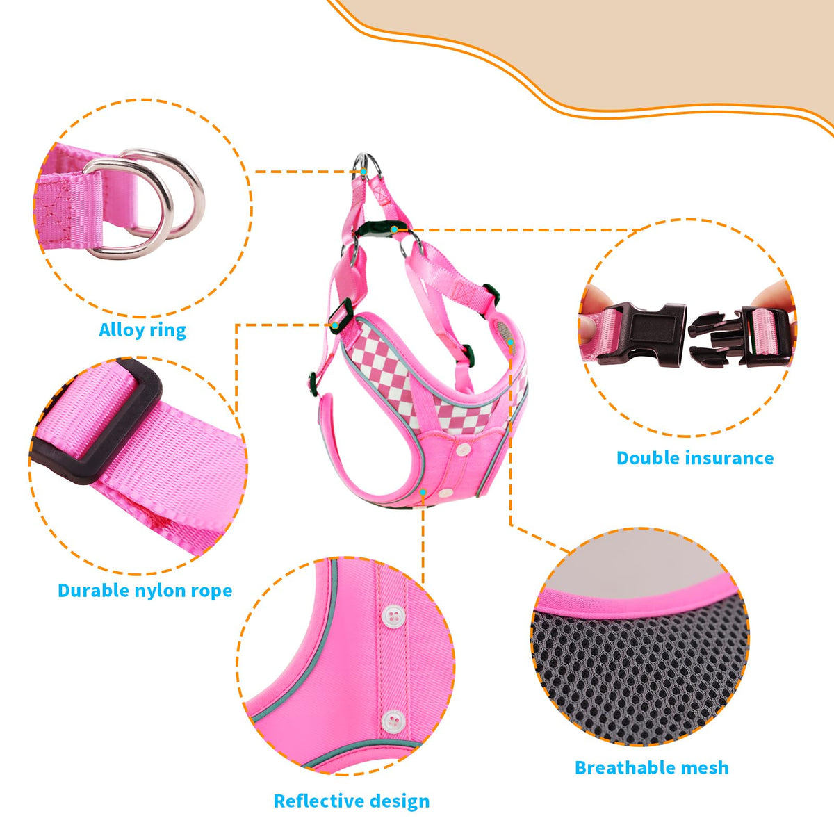 Denim French Bulldog Harness with Leash Set, with Breathable Padded Puppy Harness for Small Dogs Training and Walking (XS Pink)