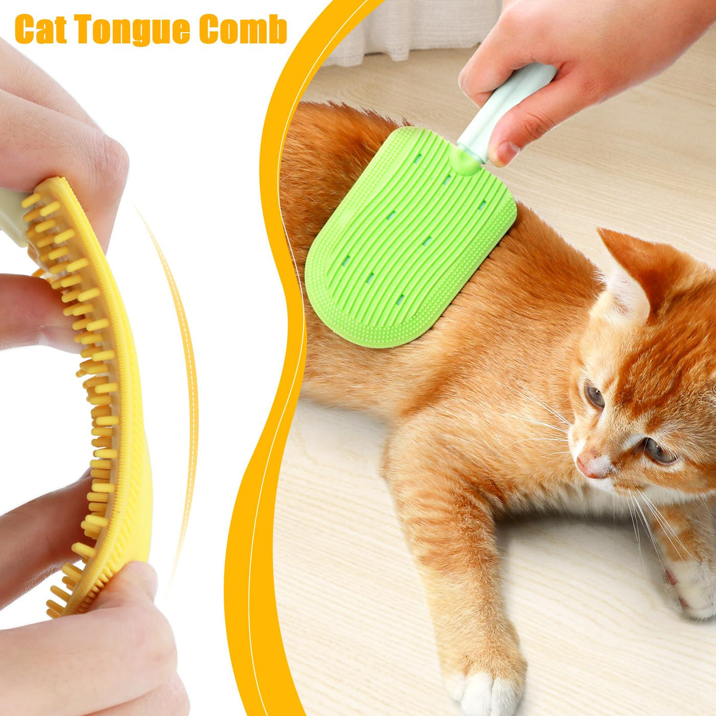 Denwwico 3 Pcs Cat Tongue Comb,2025 Silicone Cat Brushs For Indoor Cats For Long Haired Cats, Cat Grooming Brush Dematting Comb