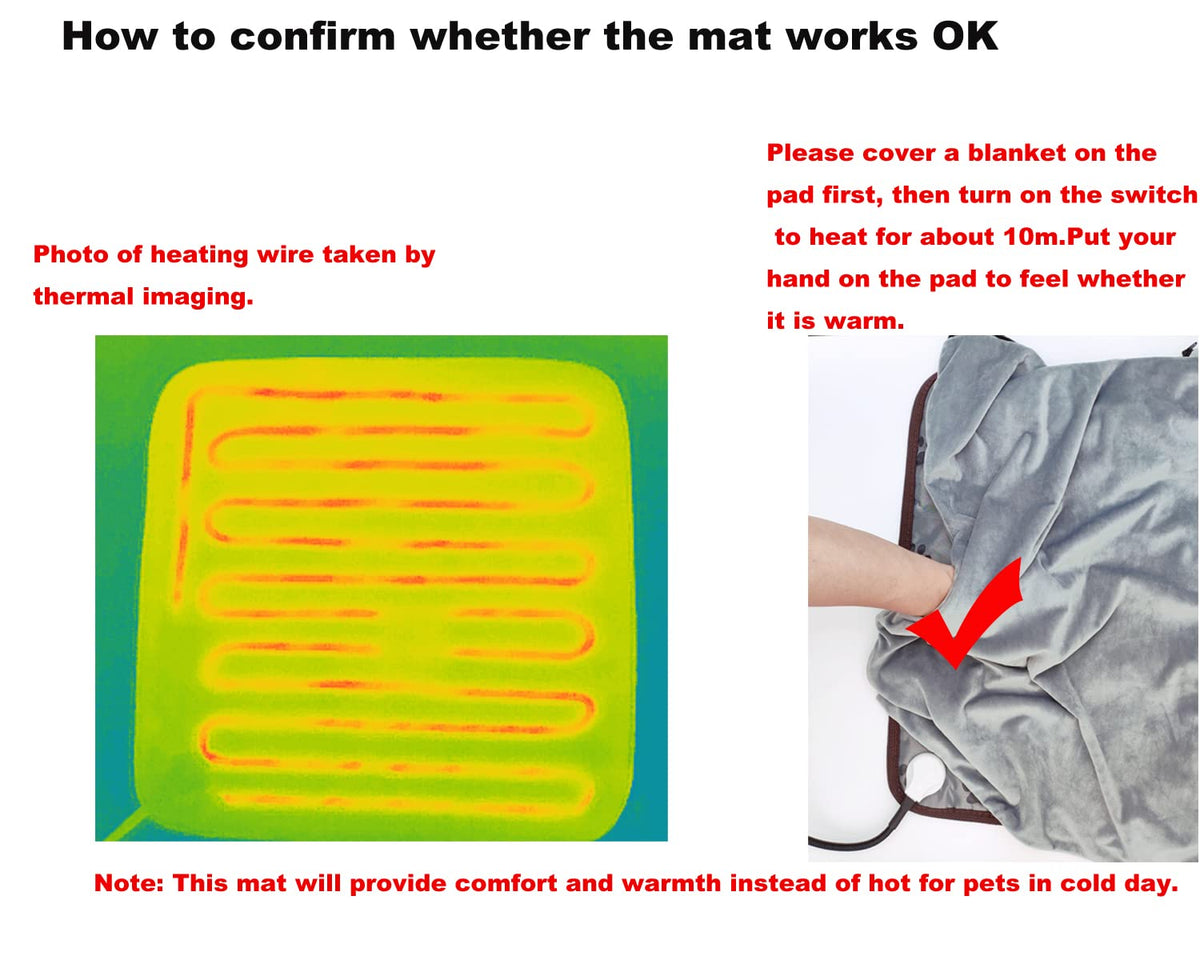 Heating Pads For Pets Provides Warm And Soothing Place For Your Puppy Or Cats To Sit Or Sleep In The Cold Winter,It Is The Best Gifs In Winter.The Heated Cat Bed Keep The Cats Cozy Warm .The Dog Heated Bed Pad Pets Warming Mat Is Made Of Water-Resistant Material And Easy To Clean. Heating Mat With Power-Off Protection Temperature Control Can Avoid Overheating To Protect Your Pets.Temperature Can Be Adjusted (Up To 104?) With High/Low Level Of Temperature Control.The Cord With Metal Outer Layer Provide Chew-Resistant Protection. Don'T Worry Your Pet Biting Or Chewing It.The Fill Material Is Cotton Of The Heated Cat Houses Mat For Outside Cats In Winter, Provide A Soft Warmer Place For Kittens. When The Cat Heated Pad Gets Dirty Please Wipe It Clean With A Wet Fabric.