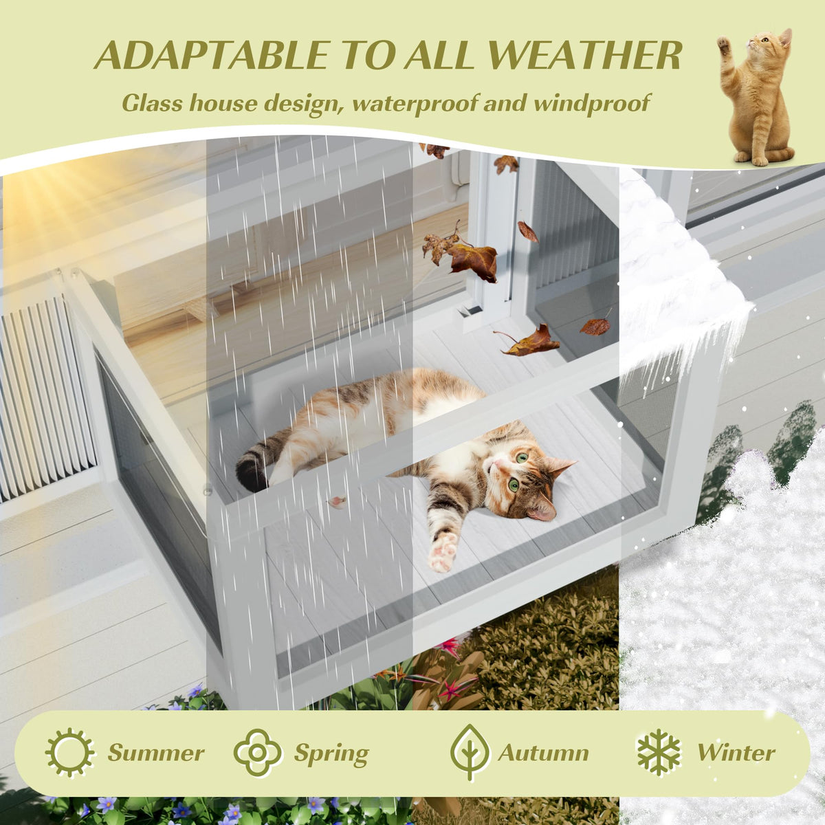 Description Give your indoor cat the outdoor experience they crave with our easy-to-install window cat box! Whether you live in an apartment or home without a yard, this cat window box allows your feline friend to safely enjoy fresh air and sunlight while still being protected. Its the perfect way for your cat to observe the outside world, satisfy their curiosity, and experience nature, all from the comfort of your home. With a high-density wire mesh that provides good ventilation, this space is perfect for stimulating your cats natural instincts to perch, observe and enjoy their surroundings as they would in the wild. For cats, sitting on this cat windowsill is as much fun as humans watching TV Features: - Made of solid cedar wood, waterproof roof enhances durability - Transparent acrylic version on top for cat napping, sunbathing and overlooking - Provides 360 bird-watching access to satisfy cats curiosity while preventing wild dangers - Anti-mosquito netting keeps cats away from bites and promotes air circulation. - Pitched roof for all-weather use Specifications: Color: White/Black Material. Wood, Metal, Acrylic Window Box Dimension: 25.2 L x 18.6 W x 16.2 H Adjustable Dimension:0-8.8 W on each side Package Includes: 1 x Catio cat window perch 1 x Hardware package 1 x Detailed instruction