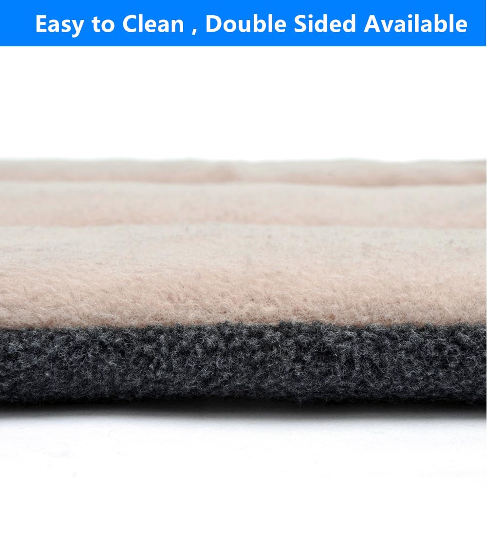 This soft comfortable Dog crate pad is perfect for use in crates carriers Dog houses vehicles or as a stand-alone bed Measures 24 x 18 with a thickness of approximately 1 easy to clean machine washable Material: Polar fleece artificial cotton size: 24 x 19 x 1 thickness: approx 1 inch color: tan on top gray on bottom