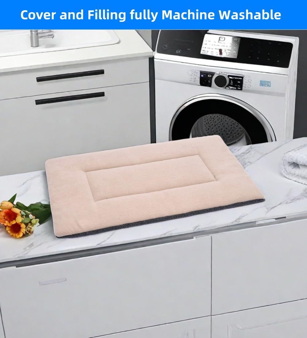 Q: Is the DERICOR Dog Bed Crate Pad machine washable?A: Yes, the DERICOR Dog Bed Crate Pad is easy to clean as it is fully machine washable. You don't need to remove the cover, making maintenance convenient.