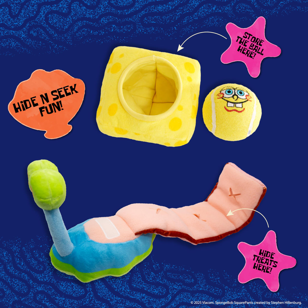 Design Lab, Inc. Spongebob Squarepants Official Merchandise | Plush Dog Toys | 2-Pack Gary & Spongebob Tennis Ball & Treat Dispe