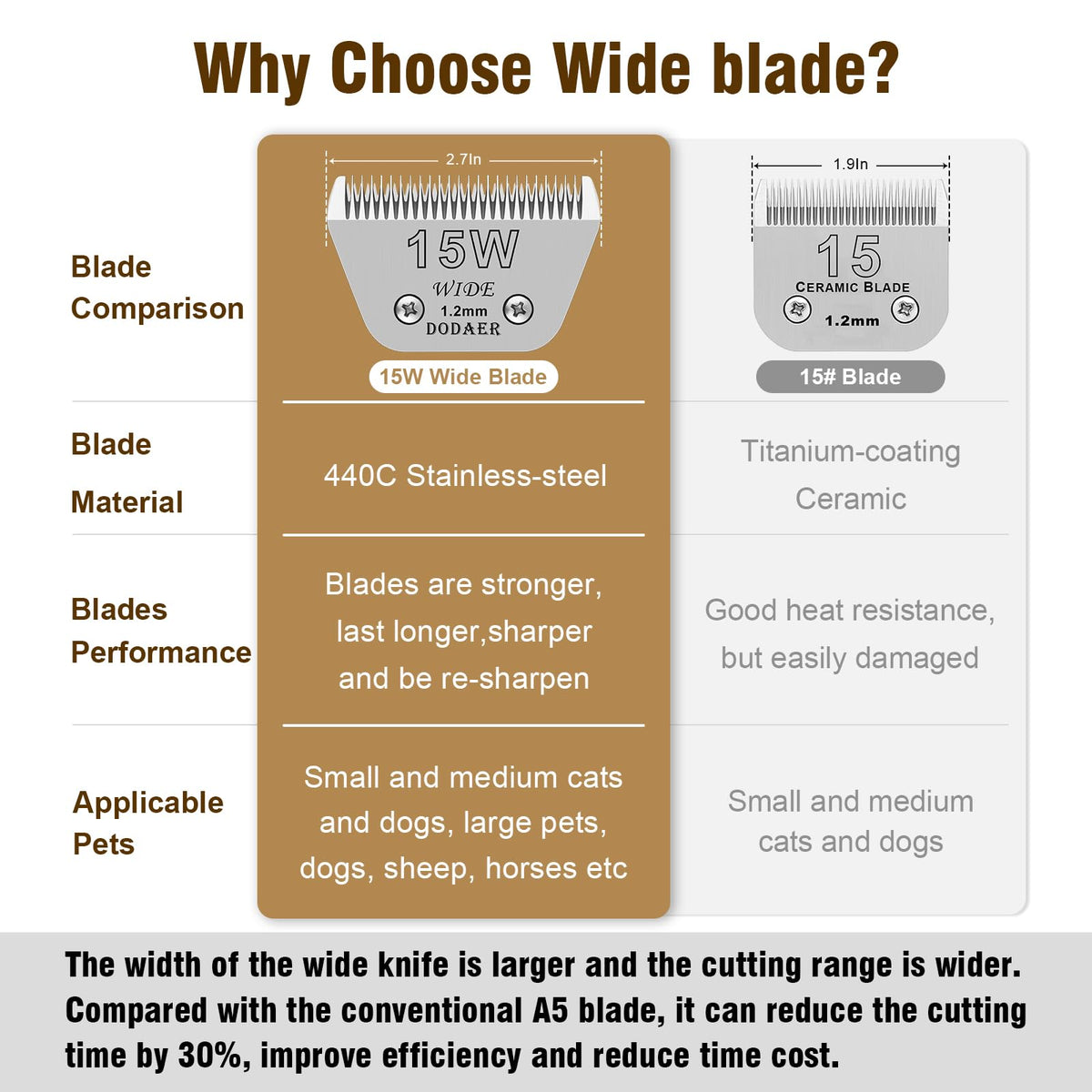 Detachable Pet Dog Grooming Blades-Size 15W Dog Grooming Wide Blade,Cutting Length 3/64'' 1.2Mm,Compatible With Most Andis,Oster