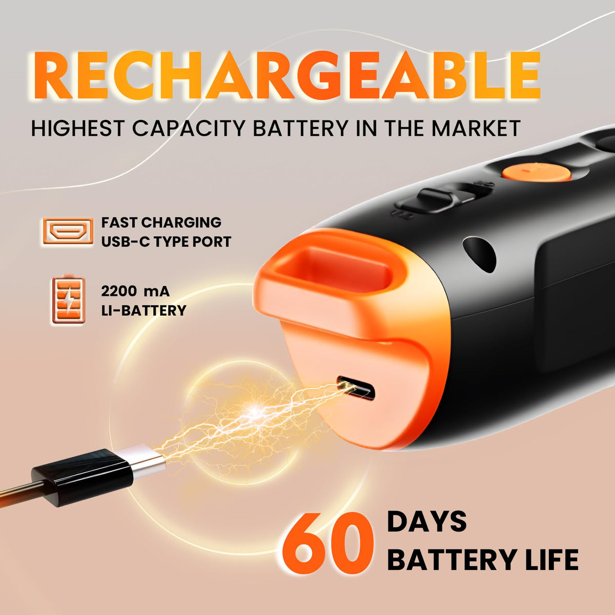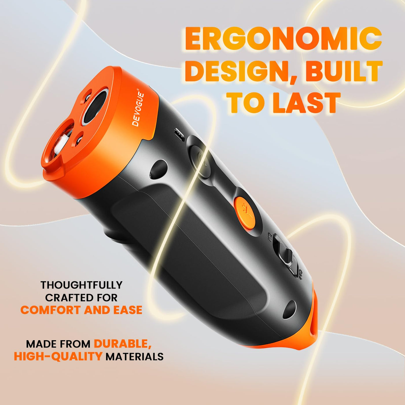 Devogue Ultrasonic Dog Bark Deterrent Device Features A Powerful 25Khz Frequency With 2W Power, Effectively Curbing Unwanted Behavior Within A 10-12M Range. Equipped With A Long-Lasting 2200Ma Rechargeable Lithium Battery And Usb-C Charging, It Fully Charges In Just 3 Hours, Ensuring Extended Use For Consistent. The Built-In 1W Flashlight Adds Convenience, Making It Ideal For Nighttime Walks Or Grabbing Your Pets Attention During Training. Designed With High-Quality Abs Material, Its Ergonomic, Lightweight Shape And Touch Button Operation Enhance Comfort And Durability. Suitable For Dogs Of All Breeds And Sizes, From 5 Lbs. To 120 Lbs., This Ultrasonic Deterrent Is A Safe And Effective Solution For Better Behavior.