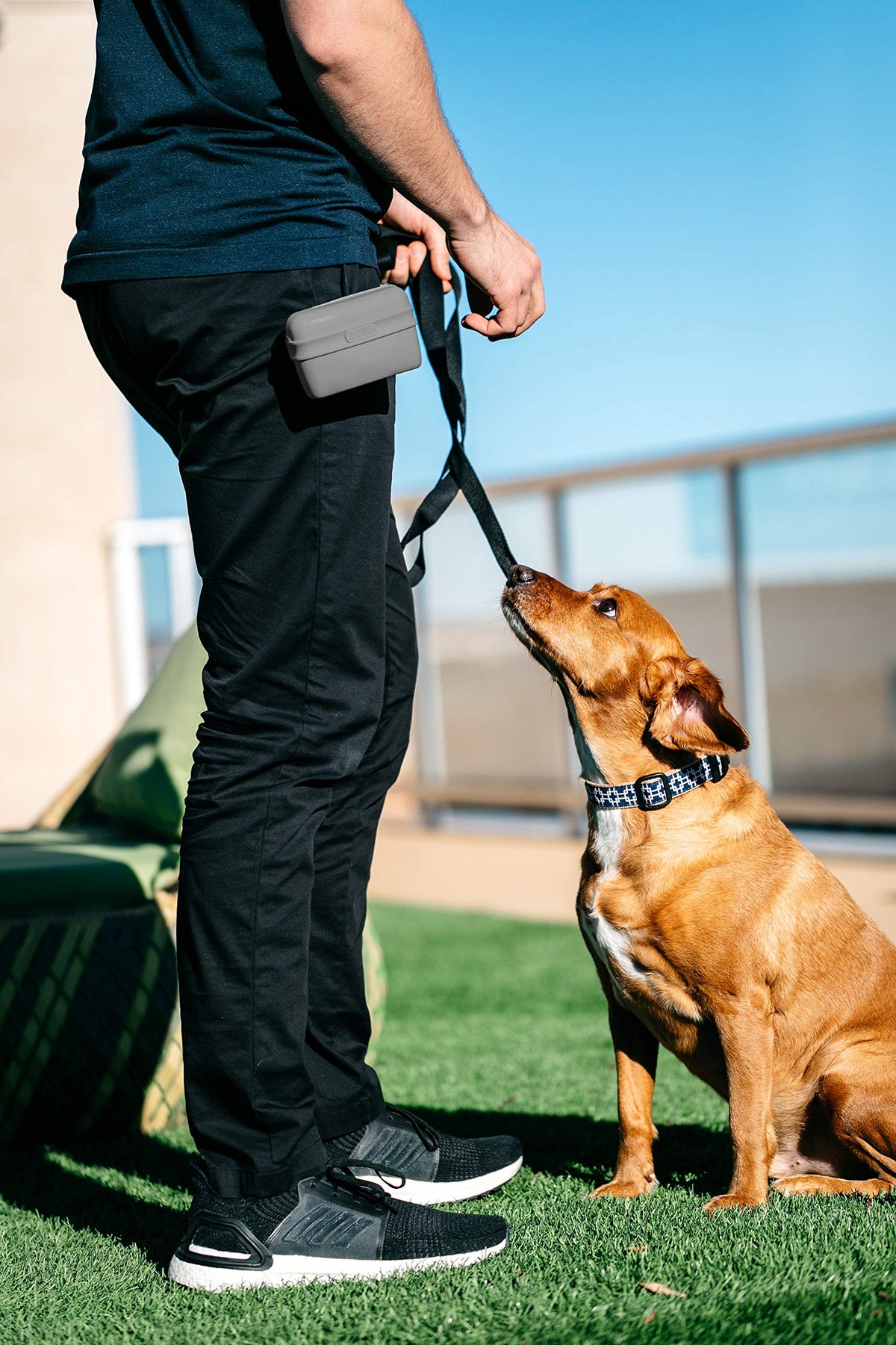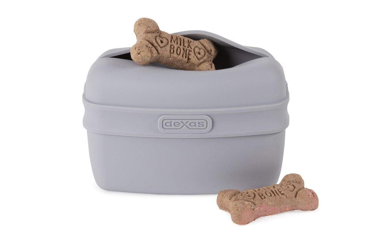 Ideal for walks or training sessions, the pooch pouch by Dexas is a perfect way to store your pup's treats on the go. The back of the pouch features a clip to easily store it on a belt or waistband. The pouch is made from memory silicone and will not stretch or warp. The pouch opens to store treats and keep them on hand for rewards! This sturdy pouch keeps treats inside, they won't fall out. Simple cleaning: dishwasher safe!