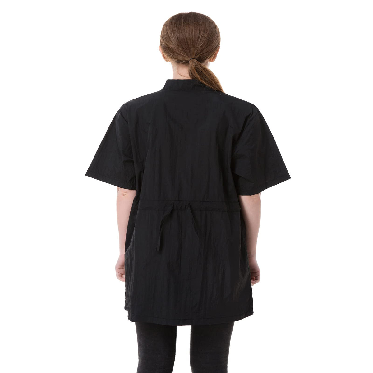 Q: How do I choose the right size for the grooming smock?A: To choose the right size, refer to the size chart provided: Size M has a chest measurement of 108cm, length of 80cm, sleeve length of 24cm, and shoulder width of 43cm. Size L measures 118cm in the chest, 85cm in length, 26cm in sleeve length, and 46cm in shoulder width. Size XL offers a chest size of 128cm, a length of 90cm, sleeve length of 30cm, and shoulder width of 51cm.