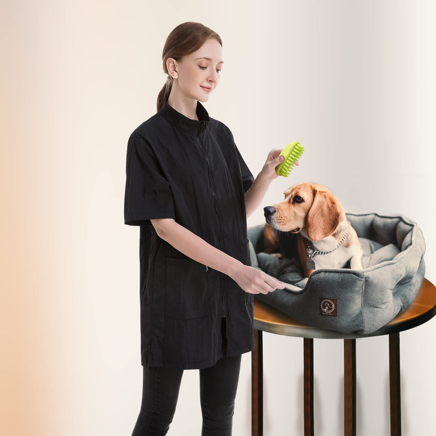 Q: Is the grooming smock suitable for professional use?A: Yes, the DHXYZZB grooming smock is designed for both professional pet grooming salons and home use, providing excellent protection and functionality for pet workers.