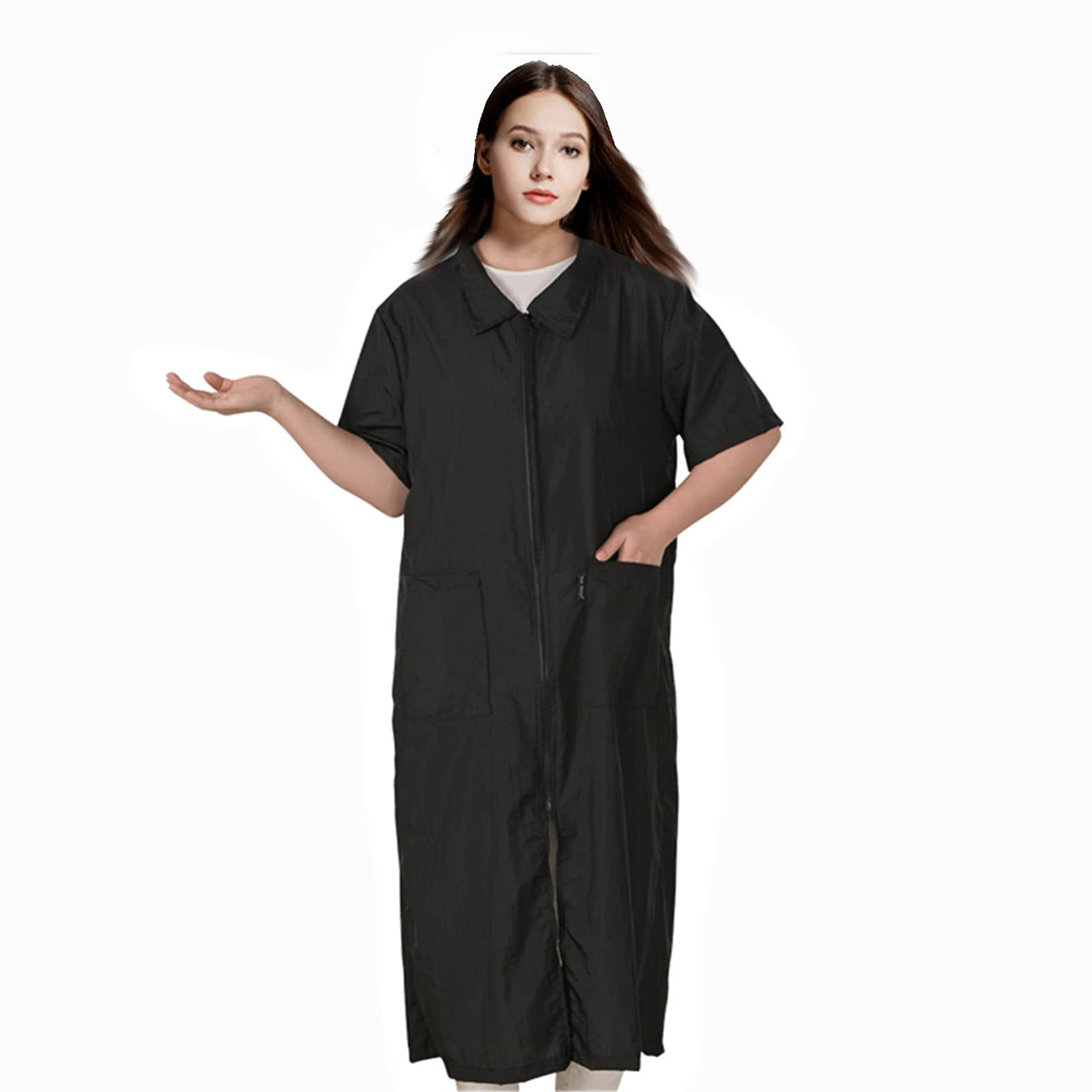 Q: Is the DHXYZZB Salon Smock suitable for both men and women?A: Yes, the DHXYZZB Salon Smock is designed to be unisex, making it suitable for both men and women who are involved in pet grooming or hairdressing.