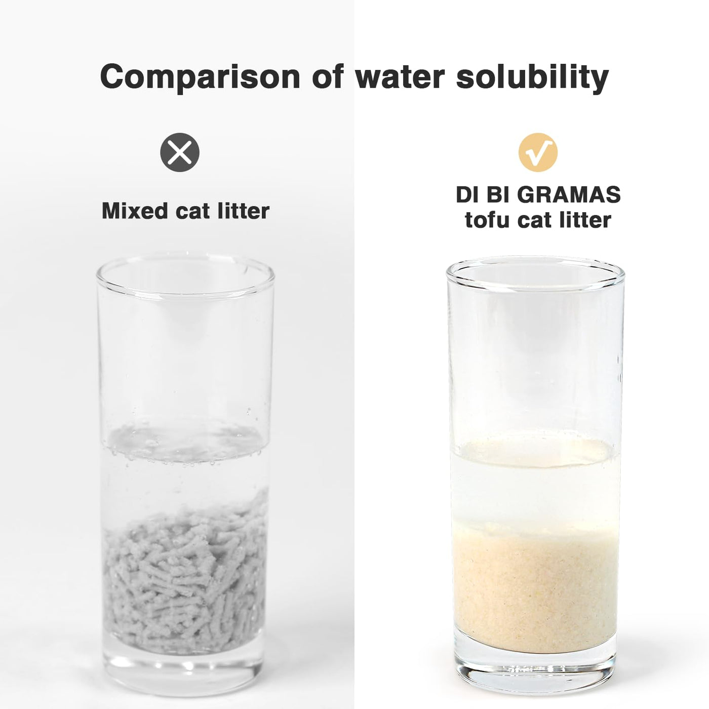 Q: Is DI BI GRAMAS Cat Litter safe for my cat?A: Yes, DI BI GRAMAS Cat Litter is made from 100% pure natural tofu, ensuring it is safe for your cat even if ingested accidentally.