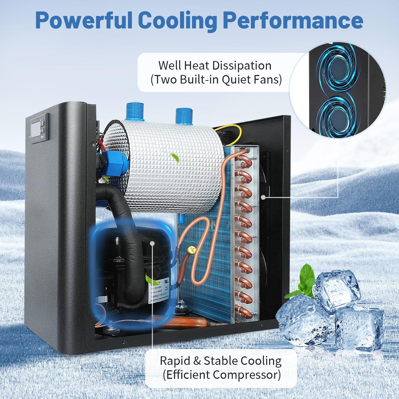 Dialorys 42 Gallon 1/10HP Aquarium Chiller - Energy Efficient Fish Tank Water Chiller for Axolotl, Freshwater & Saltwater Tanks,