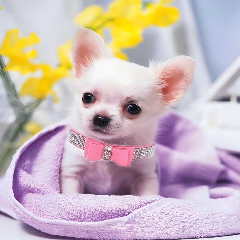 Diamond Dog Collar, Puppy Collar Girls, Bling Rhinestone Jewel Glitter Sparkly Bedazzled Cat Collars With Bow Adjustable For Xxs