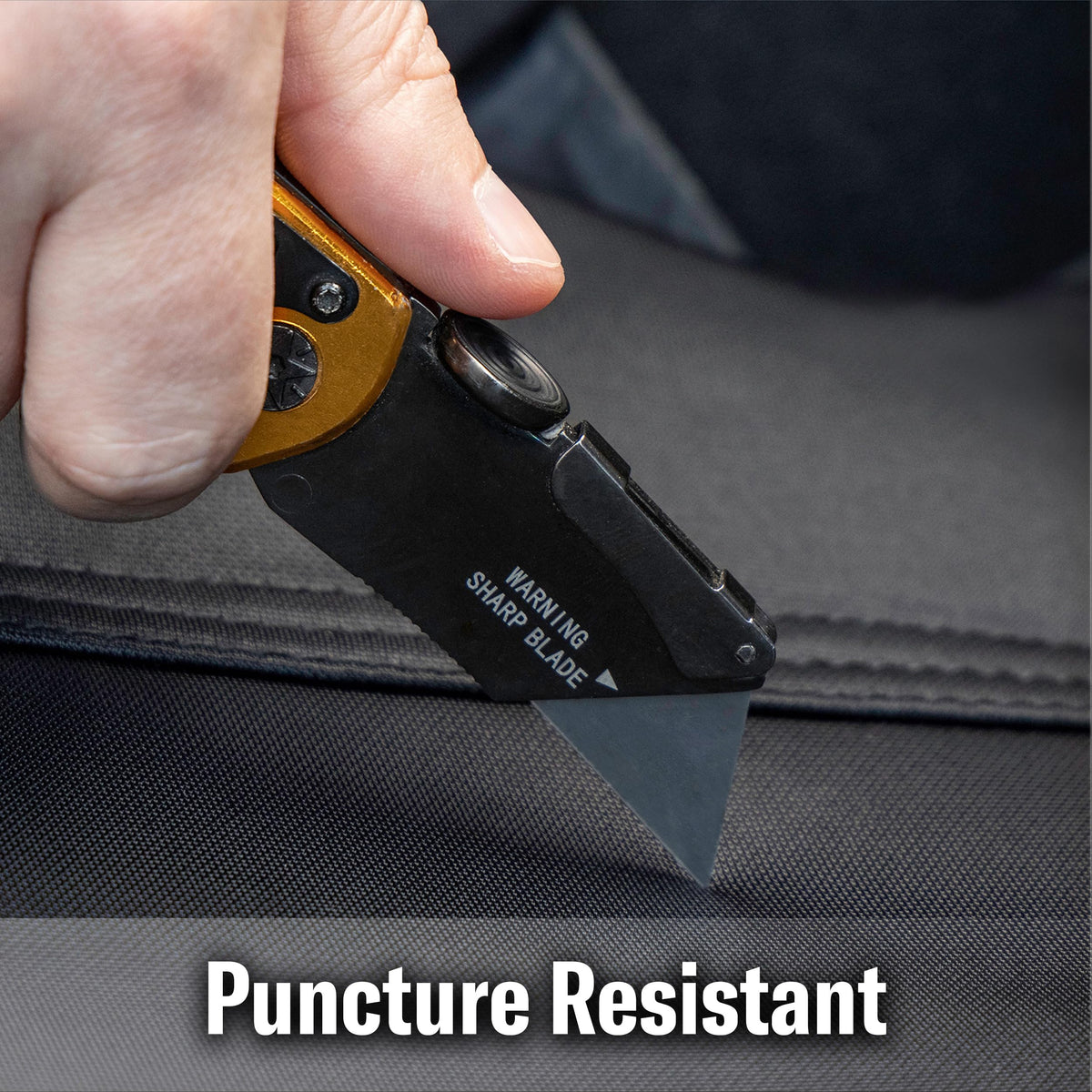 Take your vehicle's upholstery defense to the next level with Dickies 2-Piece Black Puncture-Resistant Seat Covers. Whether you're riding with the kids or pets, or hauling tools to and from work, these covers will deliver the protection you need against accidental punctures, rips, and tears. They are made for seats with or without integrated side airbags and feature patented Laser Deploy technology that allows the airbag to safely deploy through the side of the seat cover, so you and your passenger stay safe. The innovative Express Fit hook- and tie-free installation system allows you to get the seat covers on and securely fastened in a matter of minutes. Designed for vehicle versatility, they are specially engineered for use with most cars, trucks, and SUVs. These durable covers create a close, contoured fit on front seats with adjustable headrests. To ensure a finished look, this package comes complete with two matching headrest covers. Our updated strap design reduces the base cover's movement to eliminate bunching and improve overall comfort. When it comes time for cleaning, simply wipe the covers down with a damp cloth and let them air dry. Keep your interior safe from unexpected cuts and slashes with these Dickies 2-Piece Black Puncture-Resistant Seat Covers.